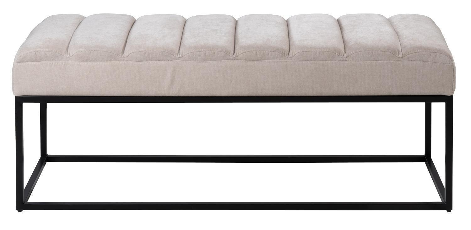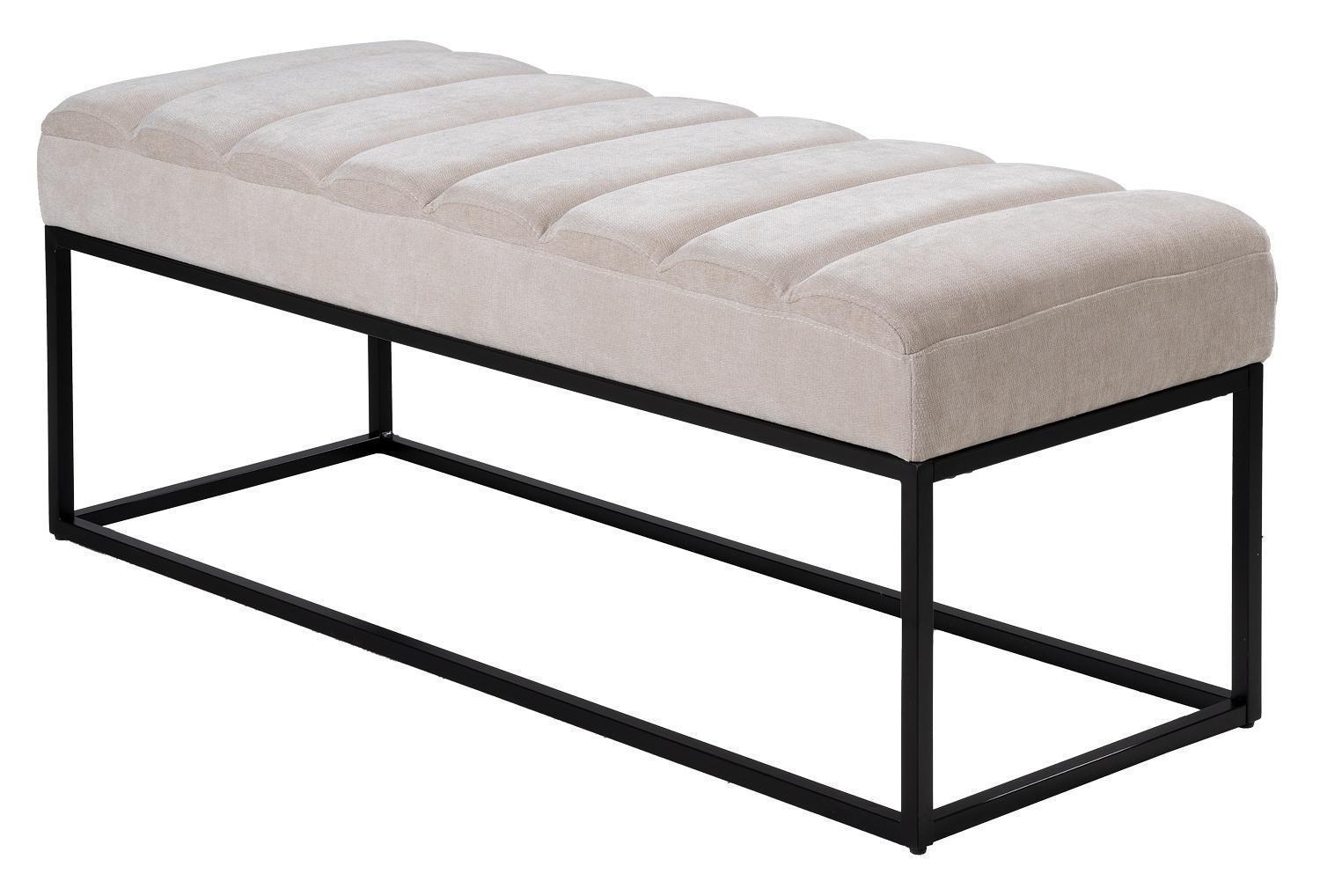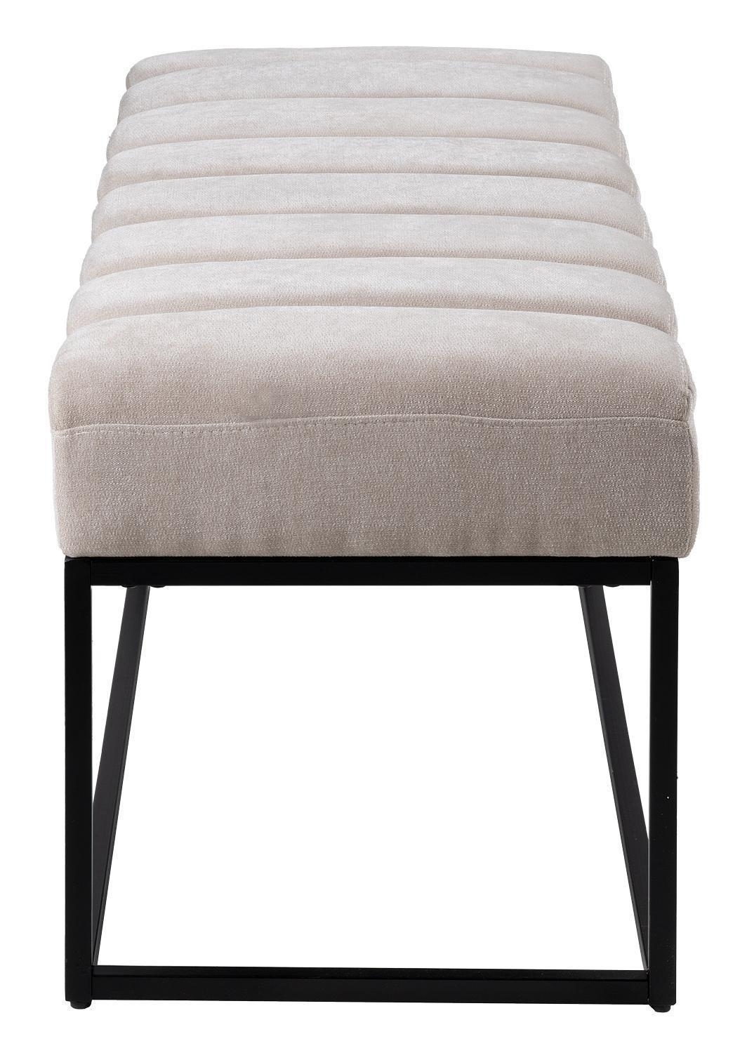 Die Home4You Sitzbank präsentiert sich in elegantem Beige mit einer Sitzfläche aus Webstoff in den Maßen 120 x 44 cm. Das schwarze Metallgestell verleiht nicht nur Stabilität, sondern auch ein modernes Design. Mit Quersteppungen auf der Sitzfläche bietet die Bank nicht nur Komfort, sondern auch eine ansprechende Optik. Geeignet für bis zu zwei Personen ist sie die ideale Ergänzung für stilvolle Sitzgelegenheiten.