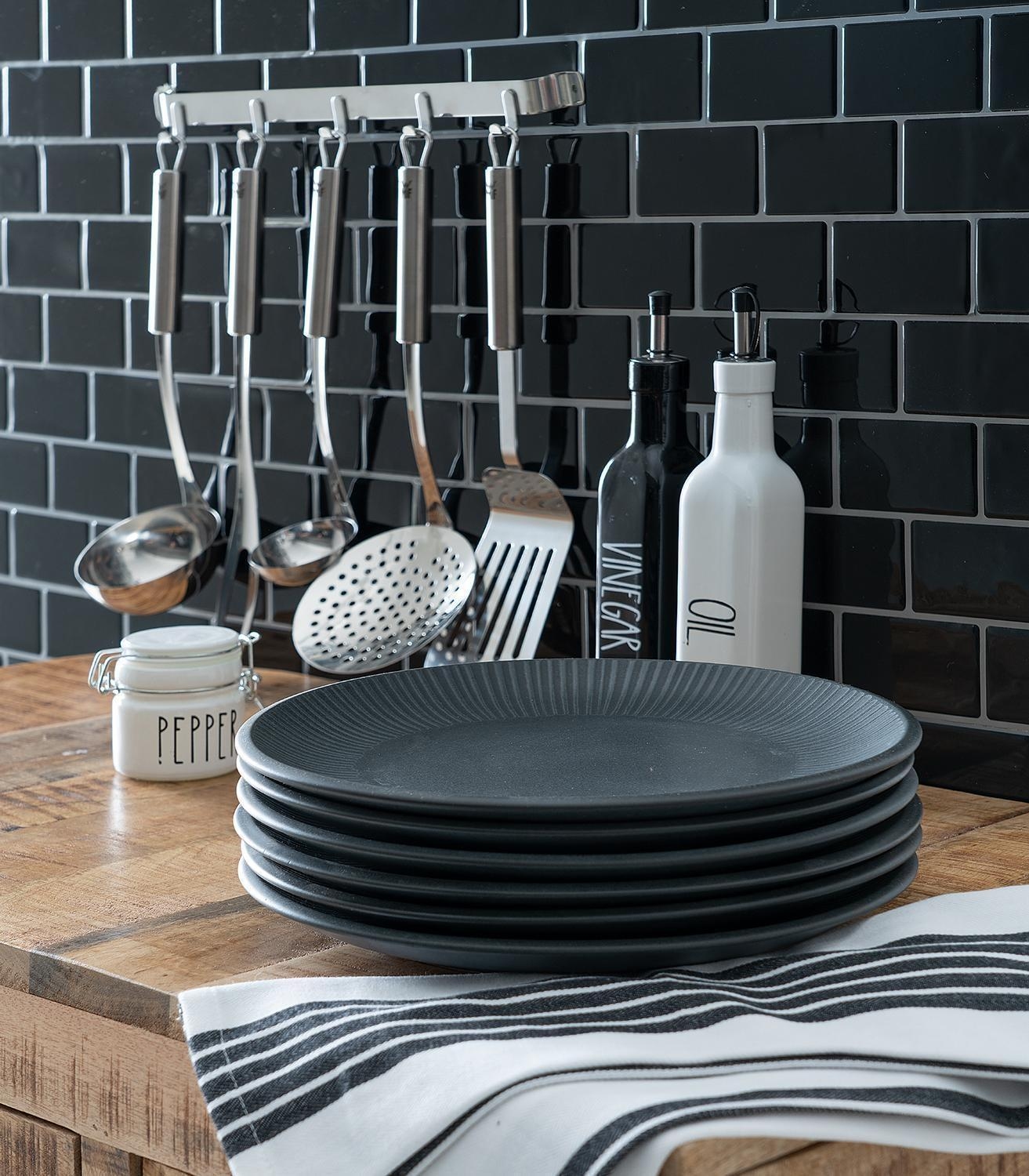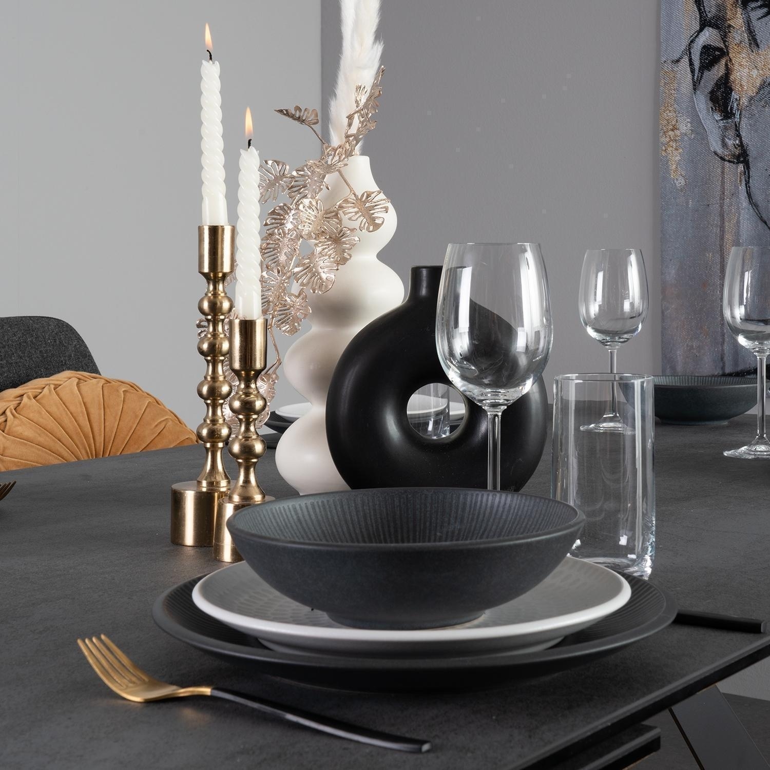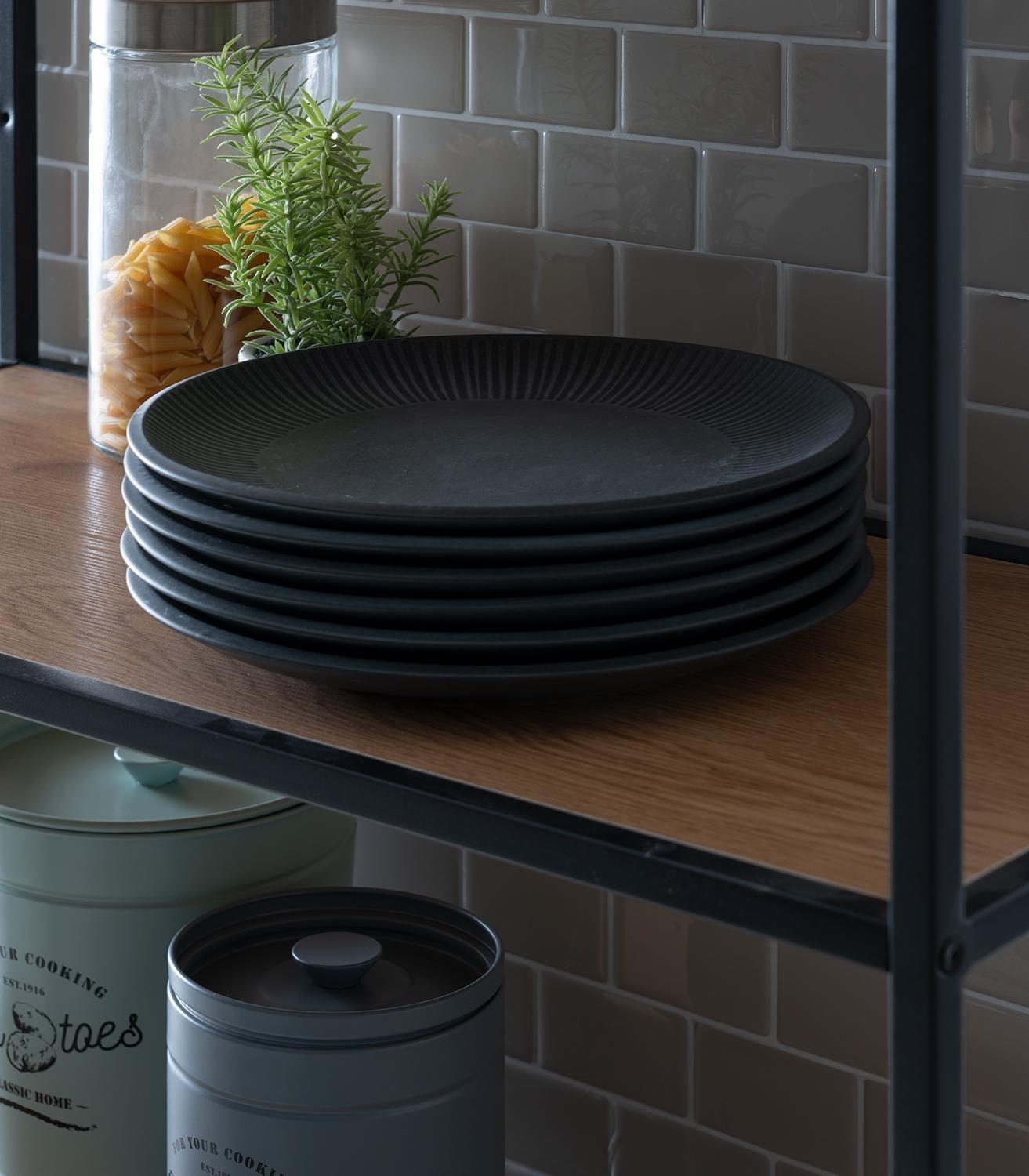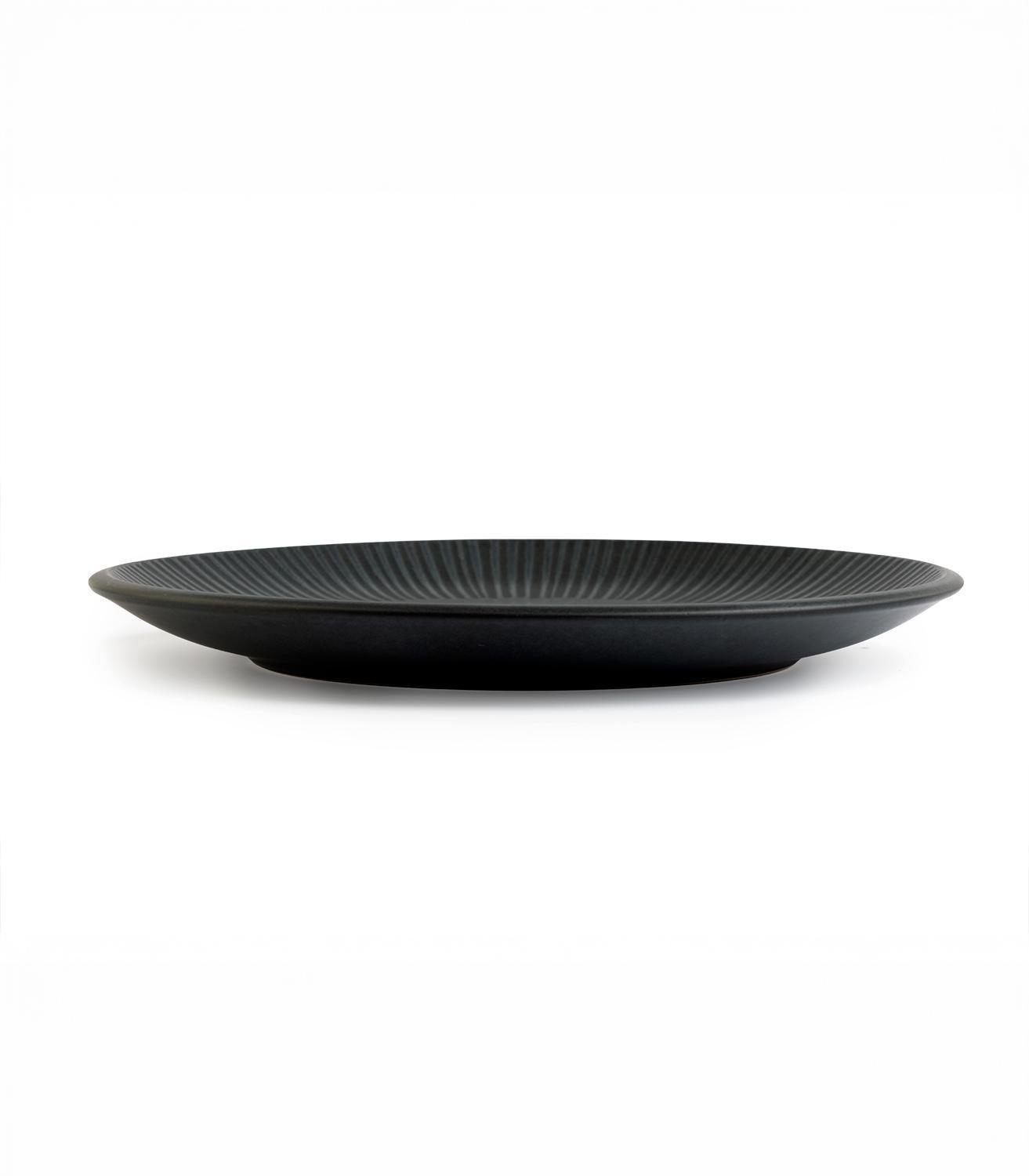 Der Speiseteller von Home4You ist ein elegantes Geschirrstück, das Ihrem Esstisch einen Hauch von Raffinesse verleiht. Er wird einzeln geliefert und ist aus hochwertigem Steingut gefertigt, was ihn robust und langlebig macht. Mit einem Durchmesser von 27 cm bietet dieser Speiseteller ausreichend Platz für Ihre köstlichen Gerichte. Er ist in einem matten Schwarz gehalten und mit einer linienförmigen Reliefprägung verziert, die ihm ein stilvolles und modernes Aussehen verleiht. Das Steingutmaterial macht den Teller mikrowellen- und spülmaschinengeeignet, was seine Verwendung und Reinigung besonders praktisch macht. Sie können ihn also bequem in der Mikrowelle erwärmen und anschließend in der Spülmaschine reinigen, ohne sich Sorgen machen zu müssen. Mit seinem gemusterten Design und seinen praktischen Eigenschaften ist dieser Speiseteller ideal für den täglichen Gebrauch sowie für besondere Anlässe geeignet. Er ist eine stilvolle Ergänzung für Ihre Geschirrsammlung und wird sicherlich bewundernde Blicke auf sich ziehen.