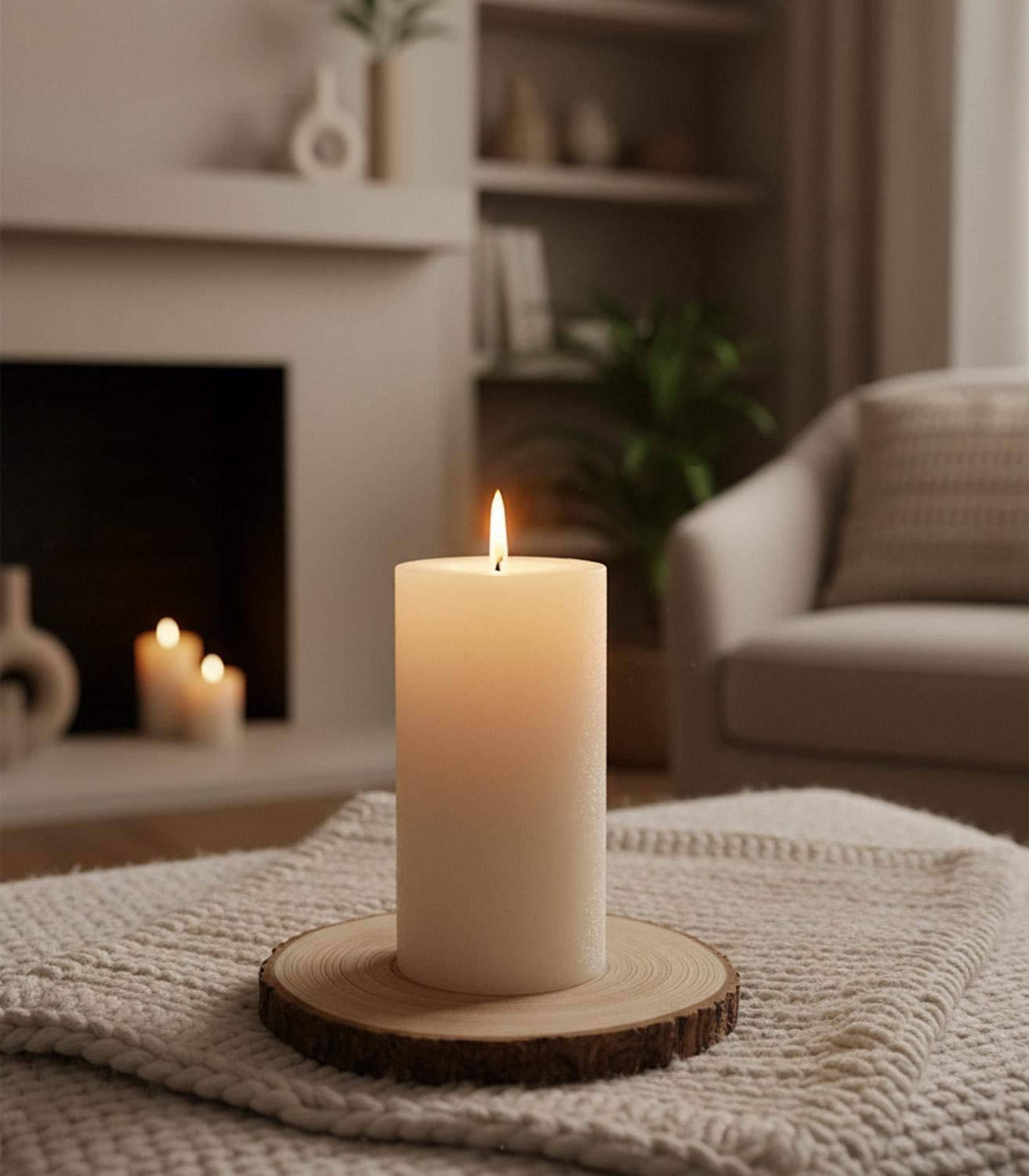 Die Stumpenkerze ANAH der Marke Home4You ist in der Farbe Creme gehalten und hat einen Durchmesser von 6 cm sowie eine Höhe von 12 cm. Sie besteht aus Paraffinwachs, ist selbstlöschend und verfügt über eine Brenndauer von etwa 50 Stunden.