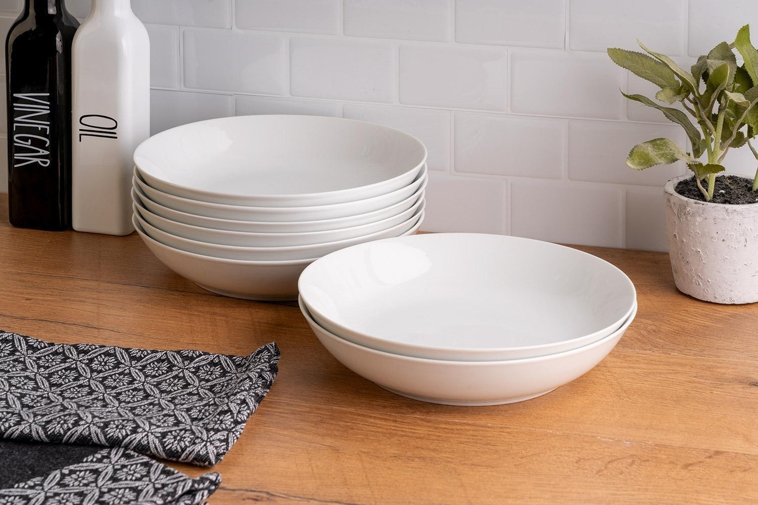 Der Suppenteller VIOLA von Home4You ist ein klassisches und vielseitiges Geschirrstück, das für den täglichen Gebrauch geeignet ist. Hergestellt aus hochwertigem Porzellan ist dieser Suppenteller robust und langlebig. Mit einem Durchmesser von 20 cm bietet der Teller ausreichend Platz für Suppen, Eintöpfe und andere Gerichte. Die Farbe Weiß und das unifarbene Muster machen ihn zu einem zeitlosen Stück, das gut zu verschiedenen Tischdekorationen und Geschirrsets passt. Dieser Suppenteller ist mikrowellen- und spülmaschinengeeignet, was seine Benutzung und Reinigung besonders bequem macht. Er eignet sich perfekt für den täglichen Gebrauch in der Küche oder für besondere Anlässe.