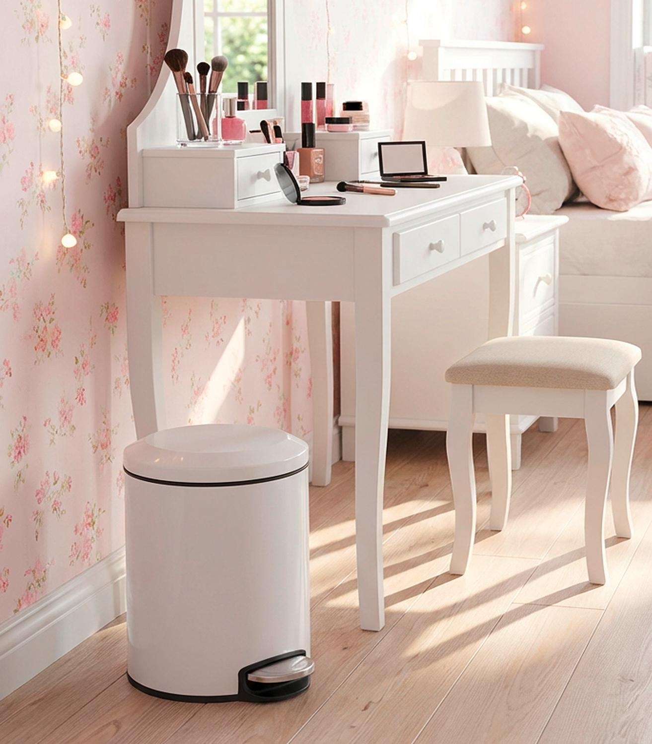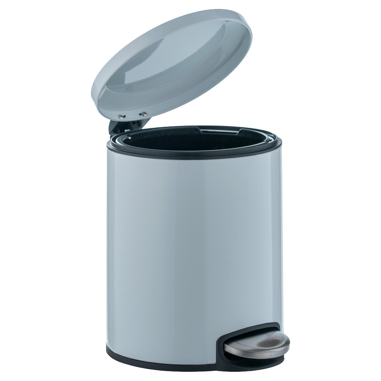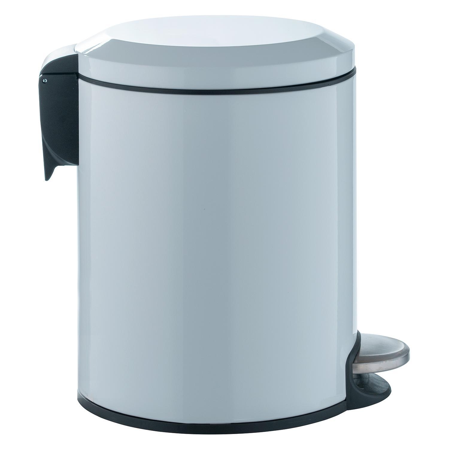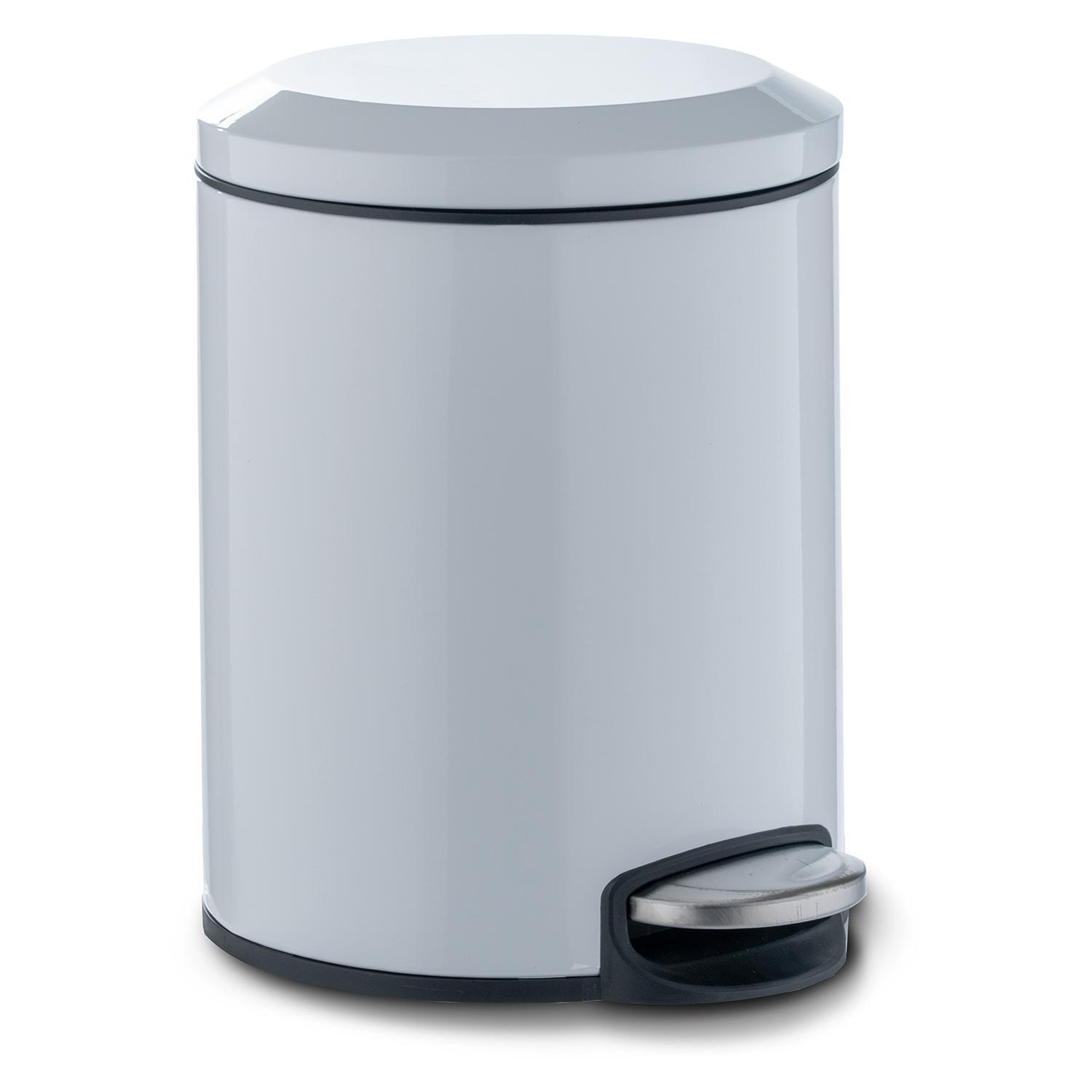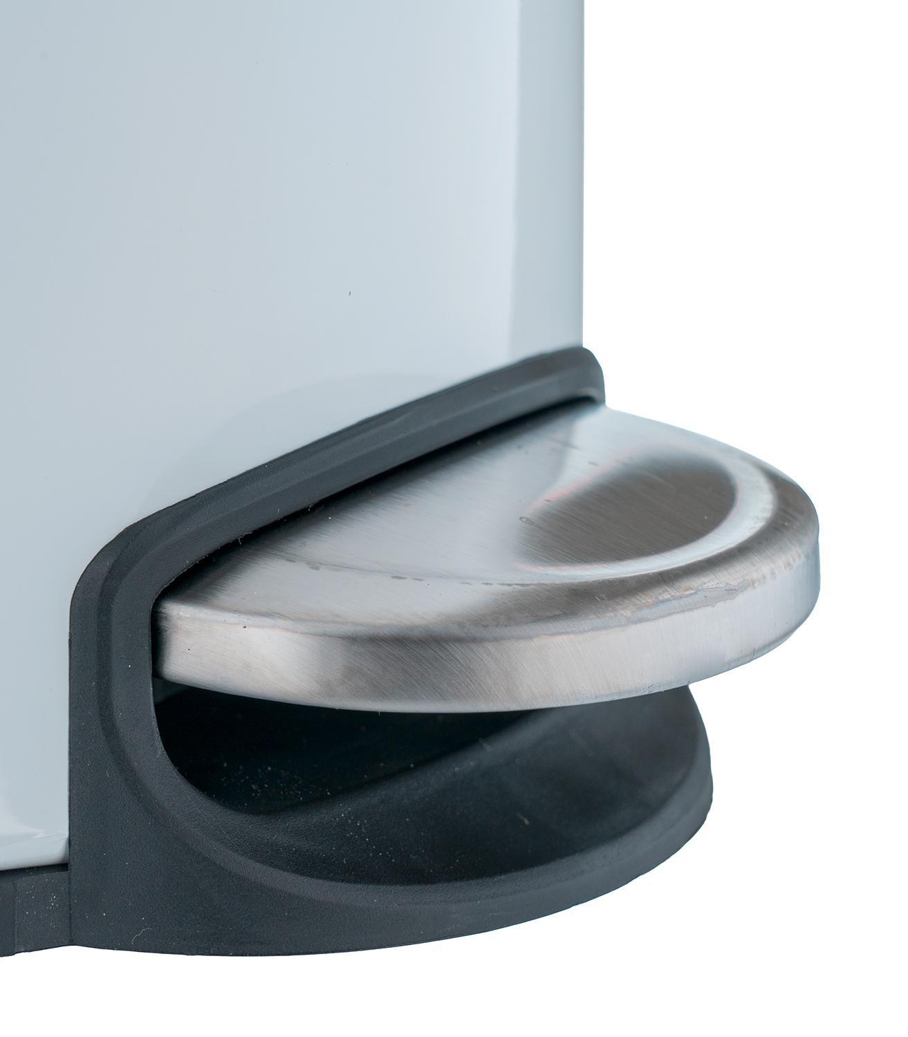 Der Treteimer der Marke Home4You ist aus satiniertem Edelstahl gefertigt und in glänzendem Weiß gehalten. Er hat einen Durchmesser von 20,5 cm sowie eine Höhe von 27,7 cm und verfügt über ein Fassungsvermögen von 5 Litern. Der Treteimer ist mit einer Soft-Close-Funktion ausgestattet und besitzt einen herausnehmbaren Kunststoffeinsatz. Das Öffnen erfolgt einfach und komfortabel über das Fußpedal.