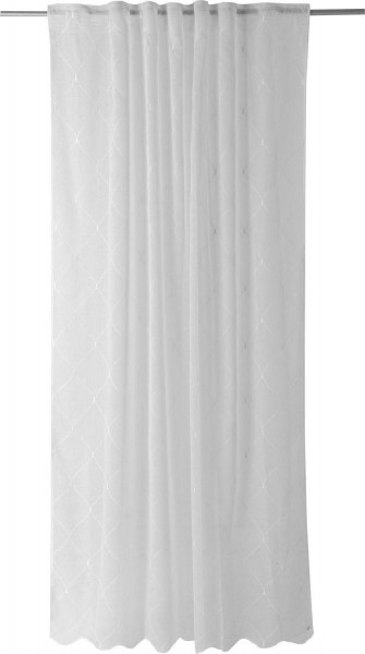 Der verdeckte Schlaufenschal von Home4You in strahlendem Weiß mit einem eleganten Strickmuster bietet mit seinen Maßen von 140 x 245 cm eine stilvolle Ergänzung für Ihre Fenster. Hergestellt aus hochwertigem Polyester ist er langlebig und pflegeleicht.
