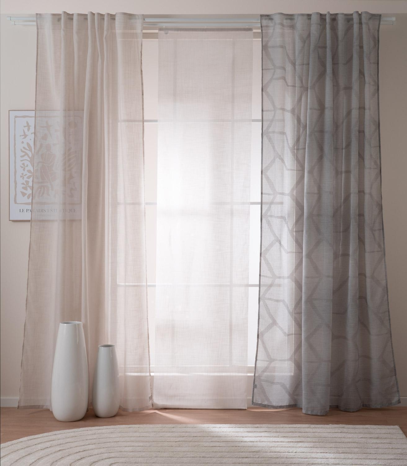 Der silbergraue Schlaufenschal von Home4You bringt frische Farbe ins Zuhause. Mit einer Größe von 140 x 245 cm fällt er elegant und lässt dank halbtransparenter Qualität viel Tageslicht hinein. Das grafische Muster in Leinenstruktur sorgt für moderne Akzente, während verdeckte Schlaufen einen ruhigen, harmonischen Auftritt an der Gardinenstange bieten. Der Polyesterstoff ist pflegeleicht, bei 60 °C waschbar und bügelgeeignet – ideal für helle Wohnräume.