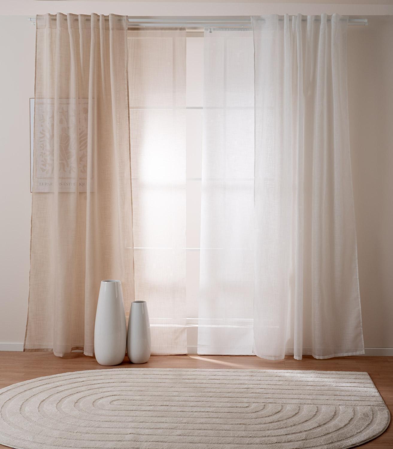 Der Schlaufenschal von Home4You in Taupe setzt sanfte Akzente in jedem Raum. Mit seiner Größe von 140 x 245 cm fällt er locker und sorgt dank halbtransparentem Stoff für helle, freundliche Atmosphäre. Der unifarbene Polyesterstoff passt zu vielen Wohnstilen, während verdeckte Schlaufen für einen ruhigen Look an der Gardinenstange sorgen. Pflegeleicht: waschbar bis 60 °C und bügelgeeignet. Ideal für moderne Fensterdekoration.