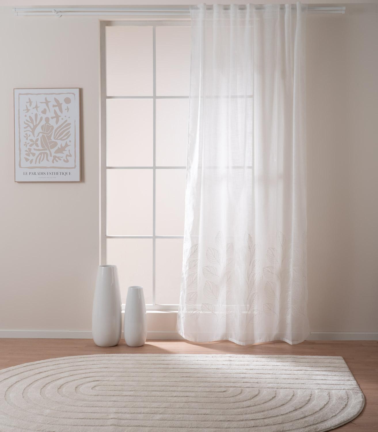 Der Schlaufenschal VALLI von Home4You bringt mit seinen bestickten Blätterranken eine elegante Natürlichkeit in jeden Raum. Der beige Vorhang aus Polyester misst 140 x 245 cm und bietet dank verdeckter Schlaufen eine harmonische, gleichmäßige Aufhängung. Er ist pflegeleicht, bis 60 °C waschbar und bügelfreundlich – ideal für ein stilvolles und zugleich praktisches Wohnambiente.