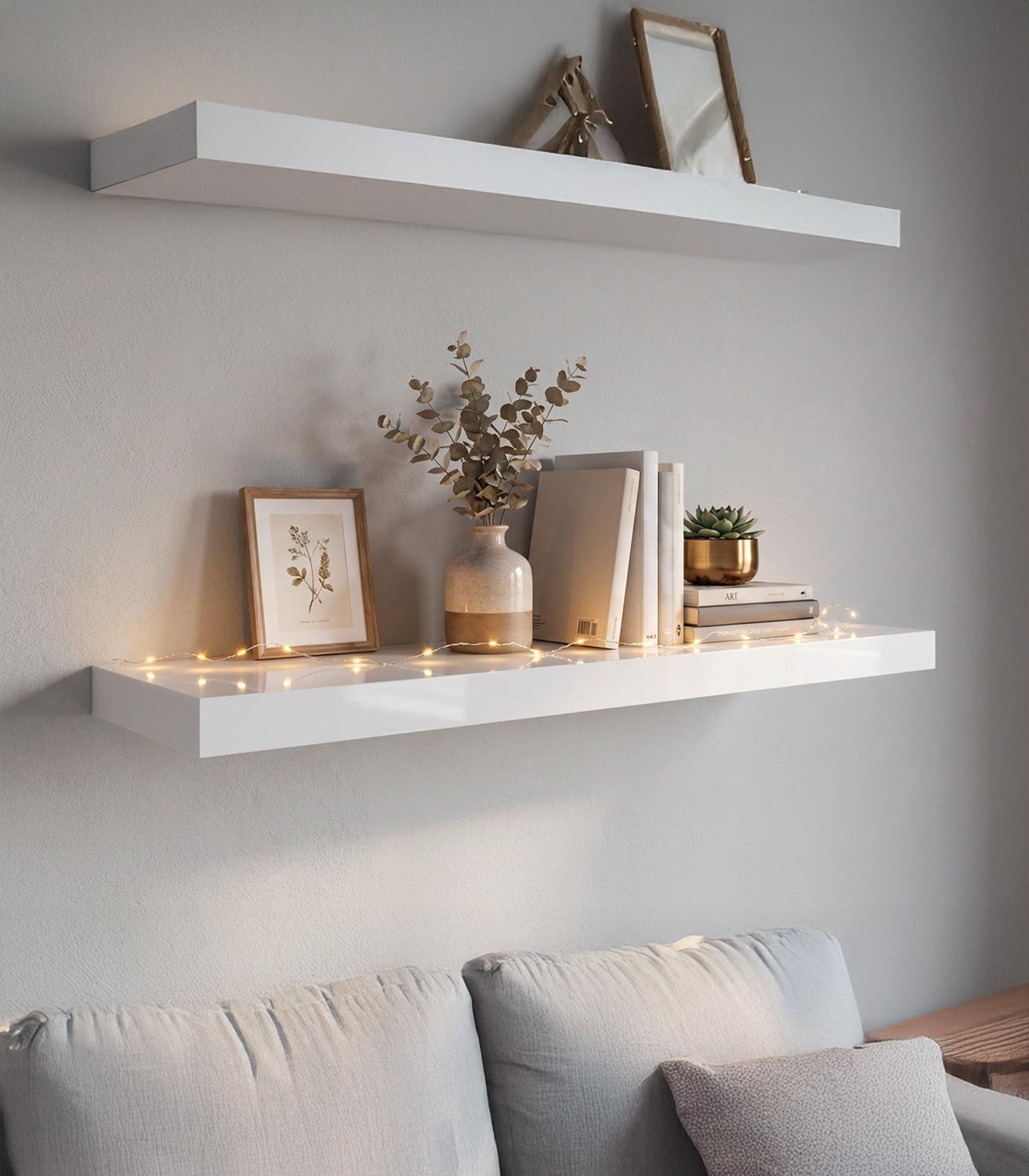 Das Wandboard RIKE von Home4You überzeugt mit modernem Design in Weiß Hochglanz und klarer Linienführung. Gefertigt aus MDF und PVC bietet es mit einer Größe von 60 x 23,5 cm eine praktische Ablagefläche für Bücher, Bilder oder dekorative Elemente. Die schlichte Optik fügt sich harmonisch in verschiedene Wohnstile ein. Das Board ist zur hängenden Wandmontage geeignet und schafft stilvollen Stauraum im Wohn- oder Arbeitsbereich.