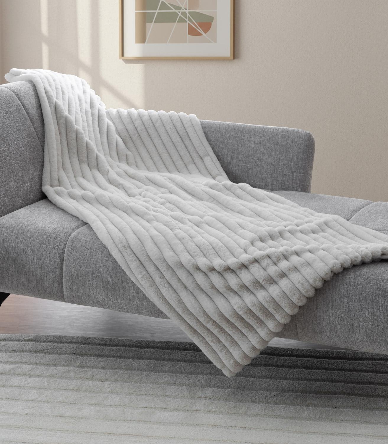 Die Wohndecke CARI von Home4You zeigt sich in einem modernen Greige und bietet mit einer Größe von 150 x 200 cm viel Komfort. Sie besteht aus weichem Polyester in Cordoptik und sorgt für ein angenehm kuscheliges Gefühl. Die Vorderseite verfügt über ein Gewicht von 450 gsm (Gramm pro Quadratmeter), während die Rückseite mit 180 gsm leichter gearbeitet ist. Diese Kombination macht die Decke besonders gemütlich und ideal zum Entspannen auf Sofa oder Bett.