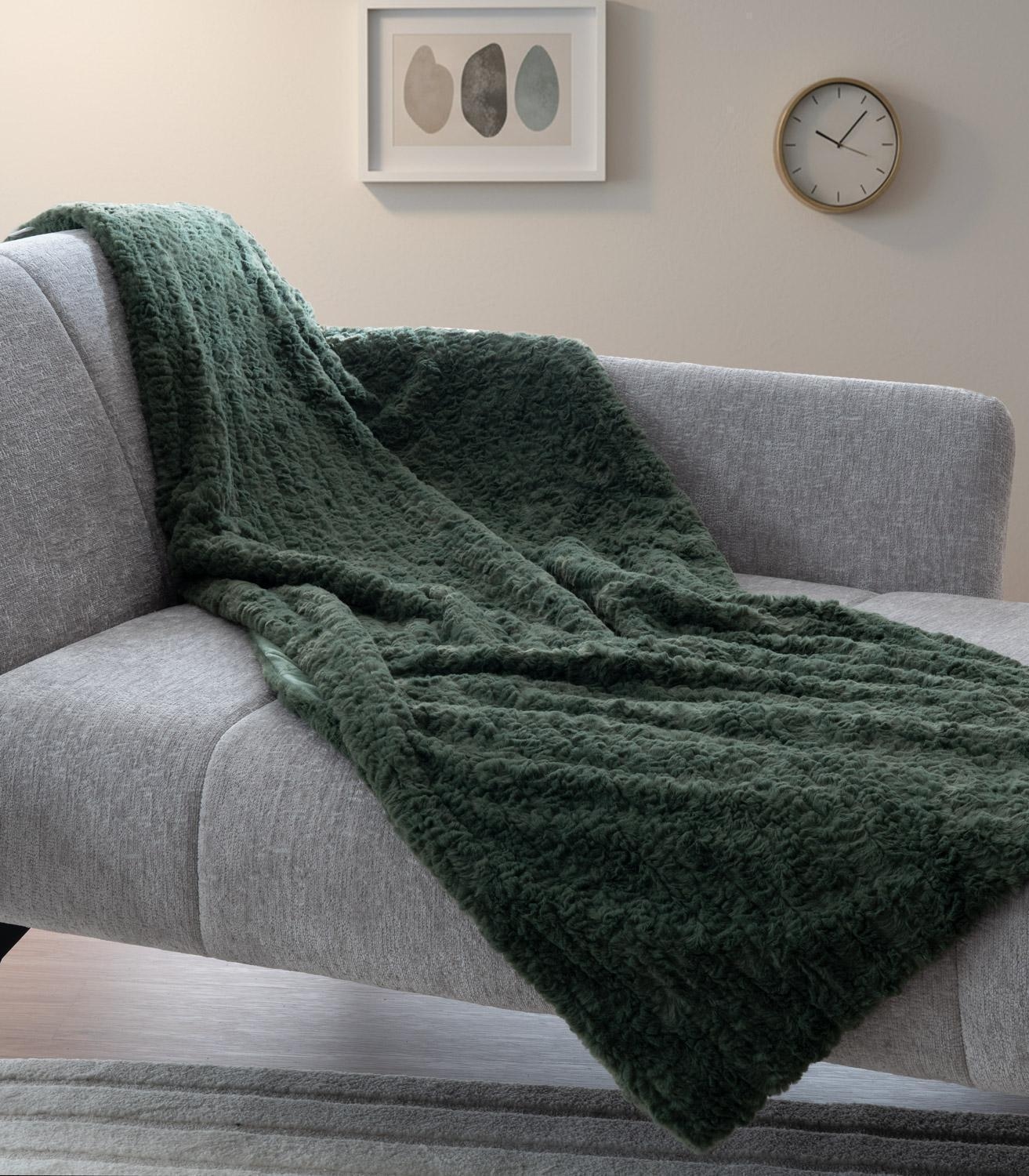 150 x 200 cm - Grün - Polyester - in Flauschoptik