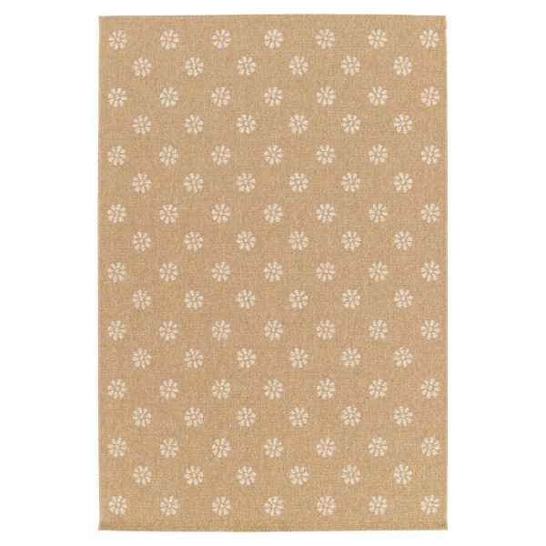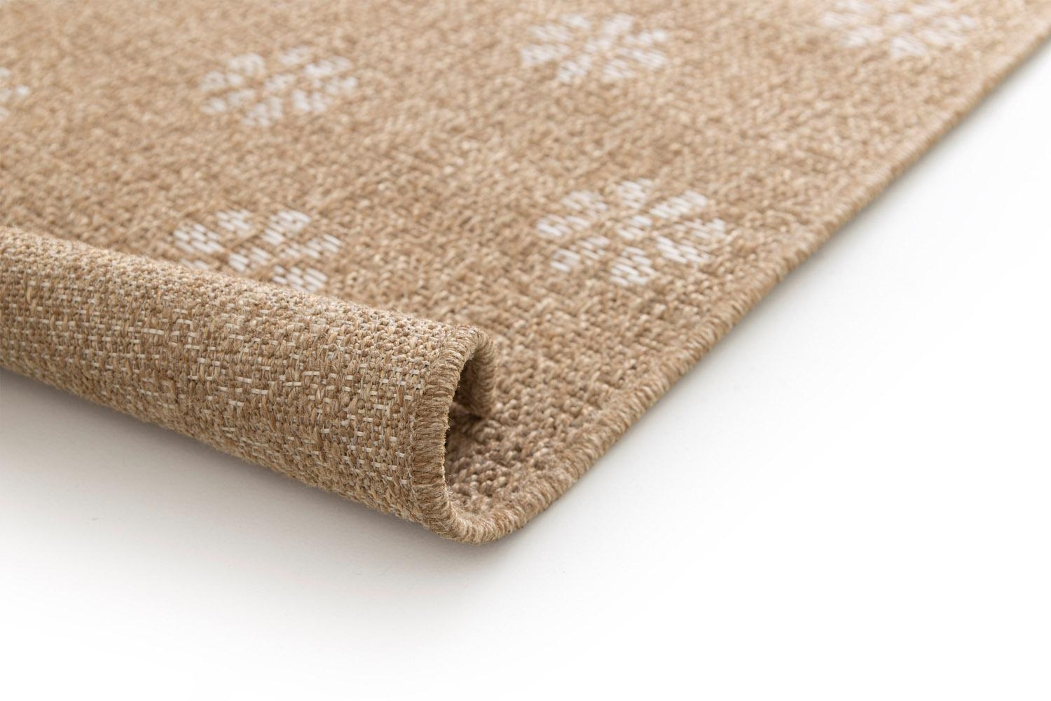 Der In- und Outdoorteppich besticht durch seine braune Sisaloptik und weißen Blumenmustern. Mit einer Größe von 80 x 150 cm ist er vielseitig einsetzbar und eignet sich sowohl für den Innen- als auch für den Außenbereich. Das Material aus 100 % Polypropylen macht den maschinengewebten Teppich wasserabweisend, UV-beständig und pflegeleicht. Dank der Handwäsche-Reinigung bleibt der Teppich immer in einem tadellosen Zustand und bringt Eleganz und Funktionalität in jeden Raum.