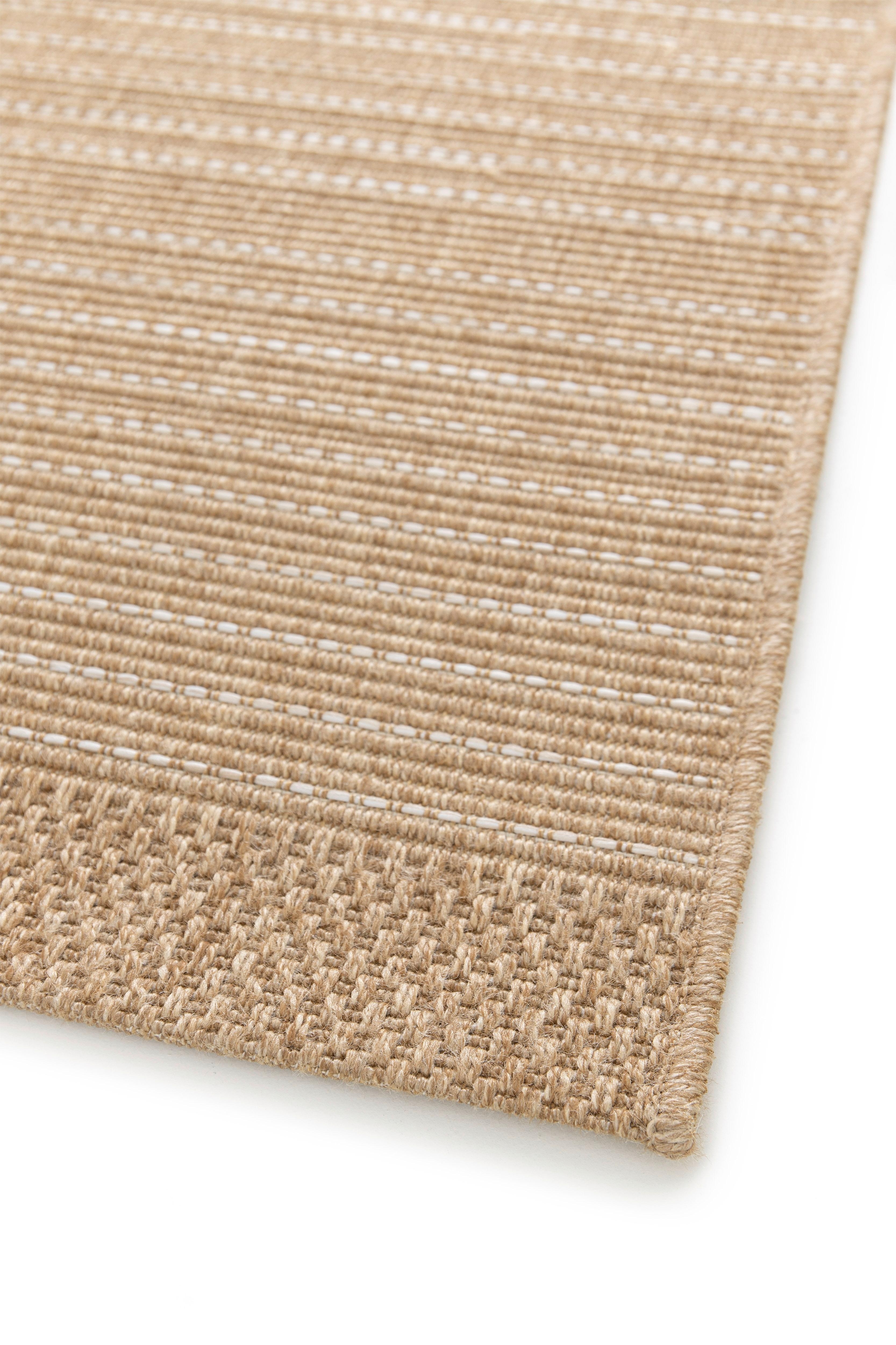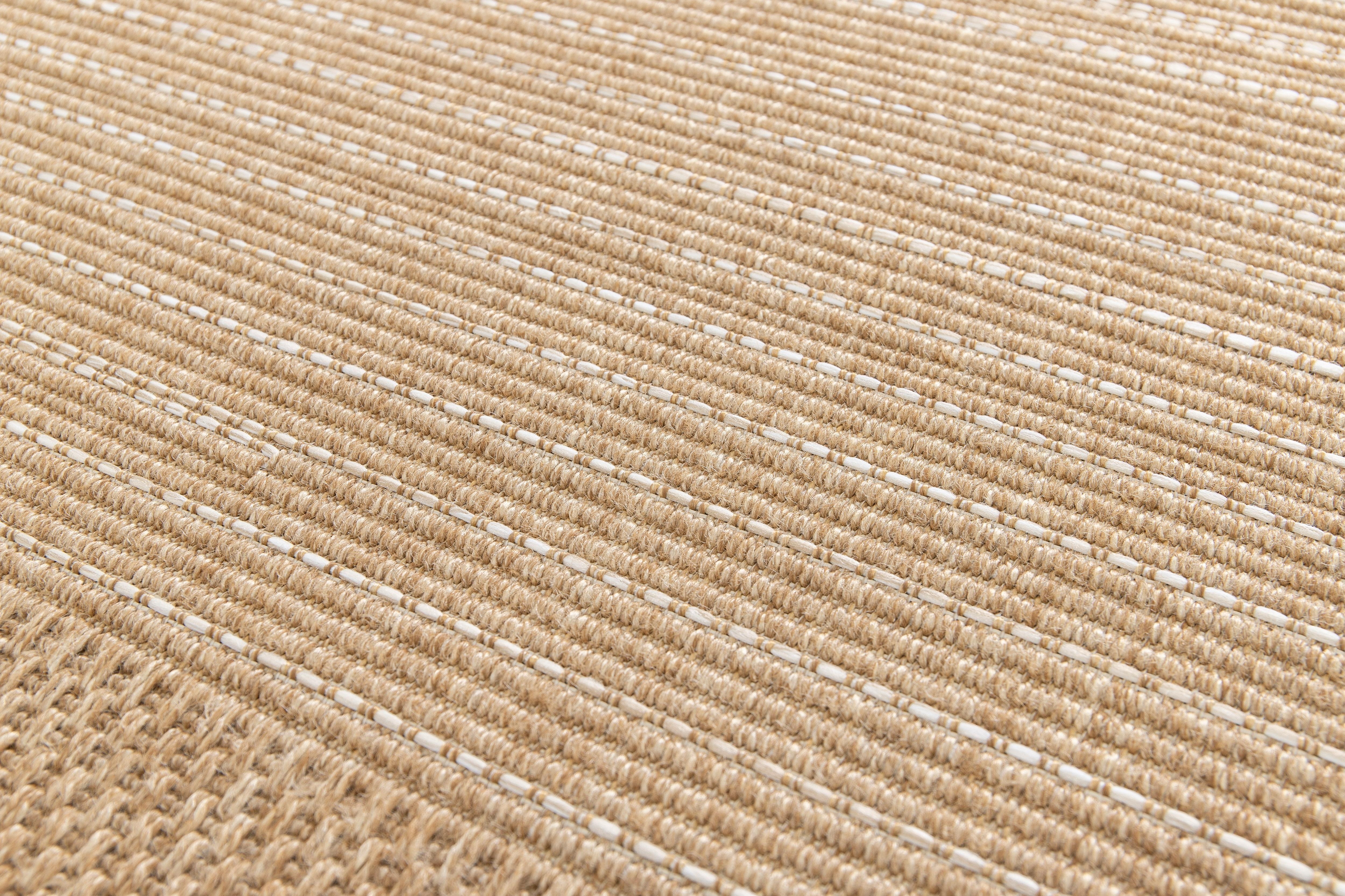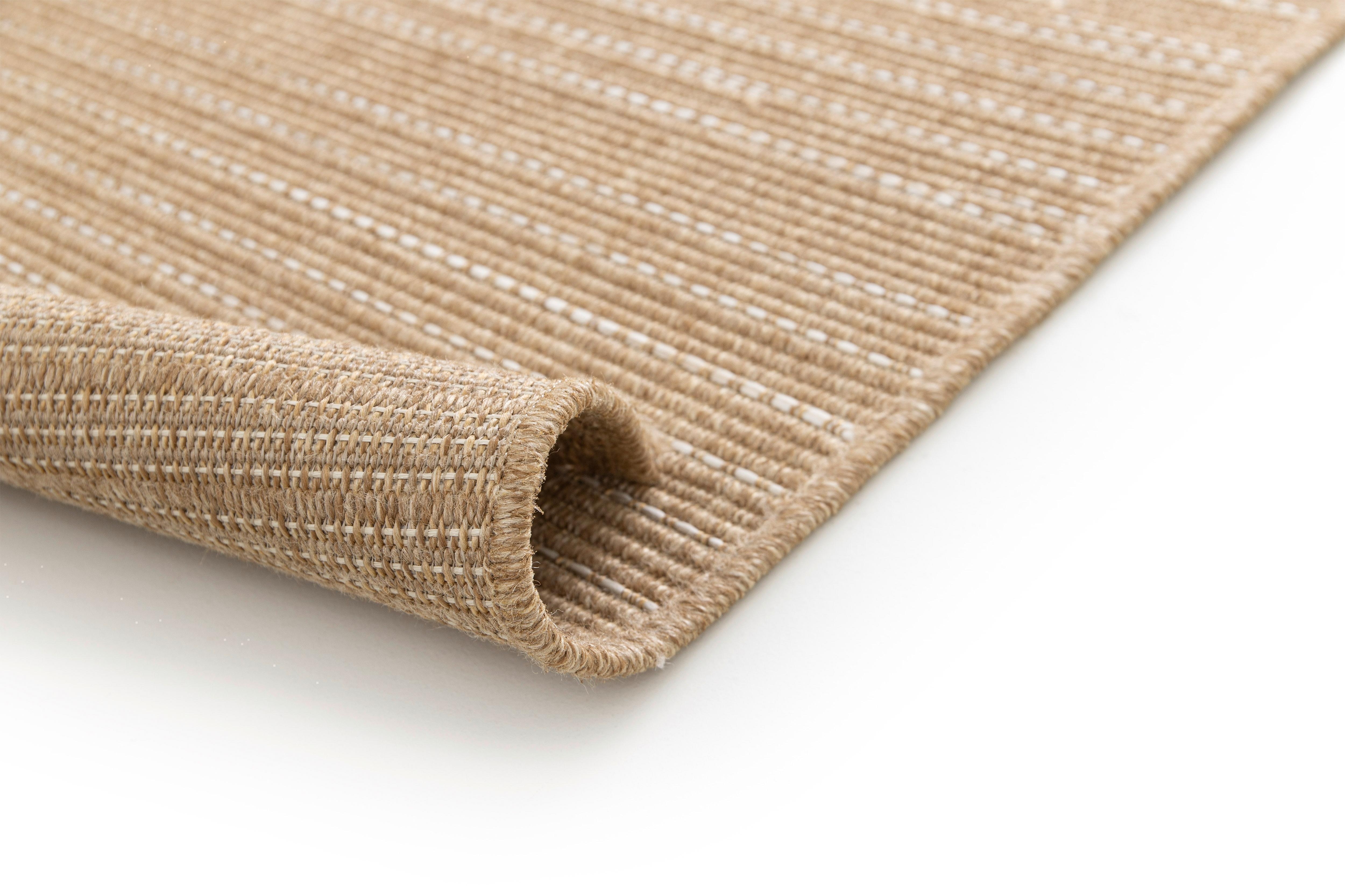 Der In- und Outdoorteppich PERGOLA besticht durch seine braune Sisaloptik und weißen Querstreifen. Mit einer Größe von 80 x 150 cm ist er vielseitig einsetzbar und eignet sich sowohl für den Innen- als auch für den Außenbereich. Das Material aus 100 % Polypropylen macht den maschinengewebten Teppich wasserabweisend, UV-beständig und pflegeleicht. Dank der Handwäsche-Reinigung bleibt der Teppich immer in einem tadellosen Zustand und bringt Eleganz und Funktionalität in jeden Raum.