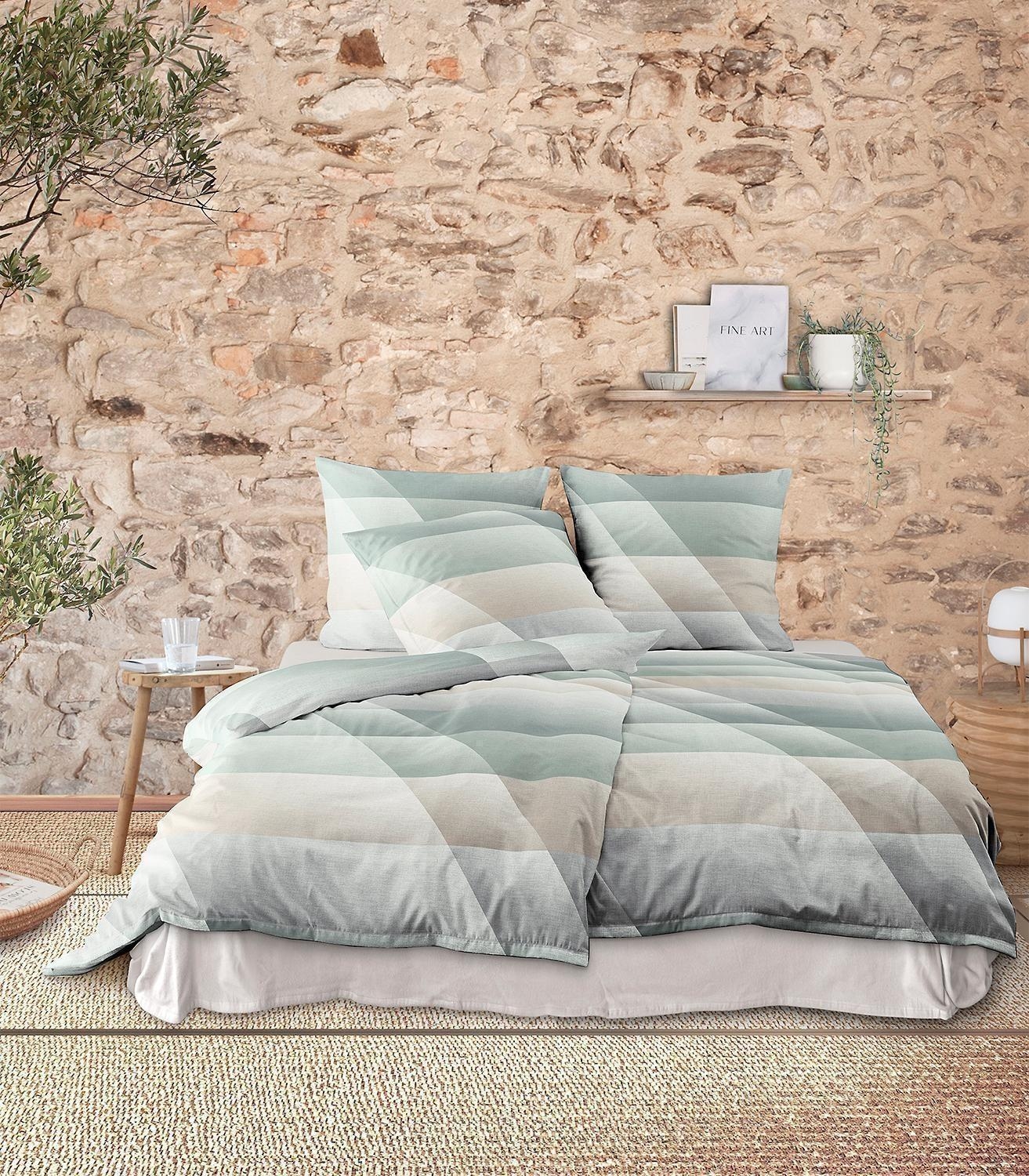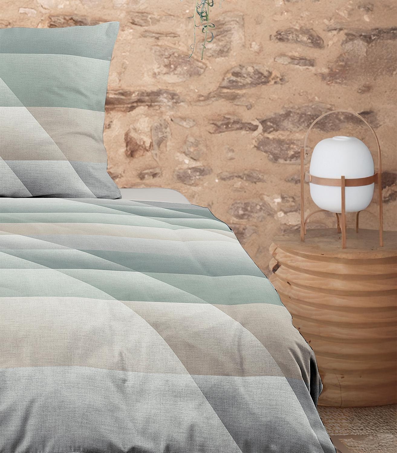 - Mako-Satin Bettwäsche in Salbeigrün, Braun und Grau