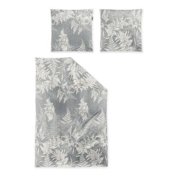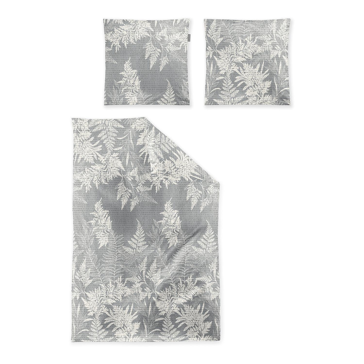 Die Seersucker-Bettwäsche WAYANA in Grau und Weiß mit floralem Muster von Irisette bringt stilvolle Leichtigkeit ins Schlafzimmer. Gefertigt aus reiner Baumwolle, umfasst das Set einen Bettbezug in 135 x 200 cm und einen passenden Kissenbezug. Die bügelfreie Seersucker-Struktur sorgt für ein angenehm luftiges Hautgefühl. Mit praktischem Reißverschluss, 60 °C waschbar und trocknergeeignet – ideal für entspannten Schlaf und einfache Pflege.