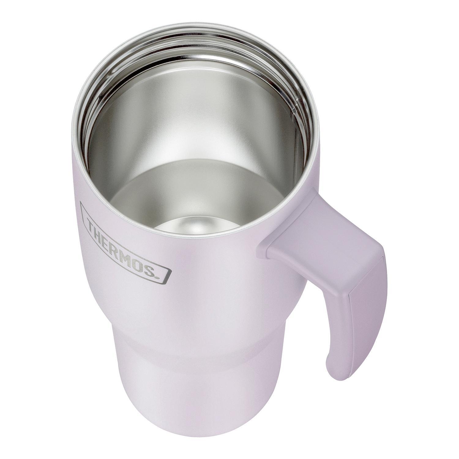 Der Trinkbehälter hält Getränke bis zu sechs Stunden kalt oder warm. Der Becher ist mit einem Henkel versehen und ermöglicht das Trinken sowohl über den mitgelieferten Strohhalm als auch direkt aus dem Becher.
