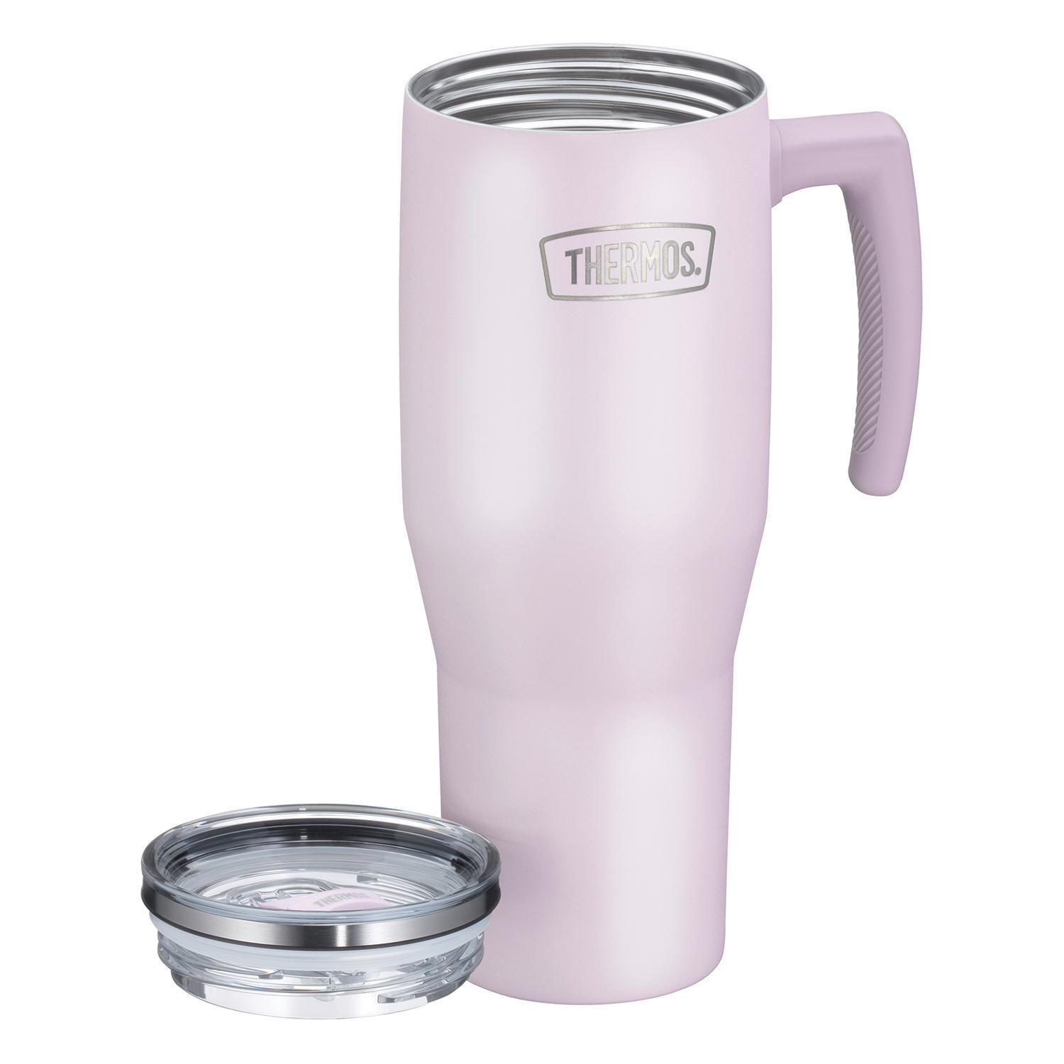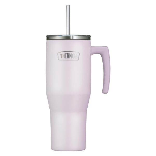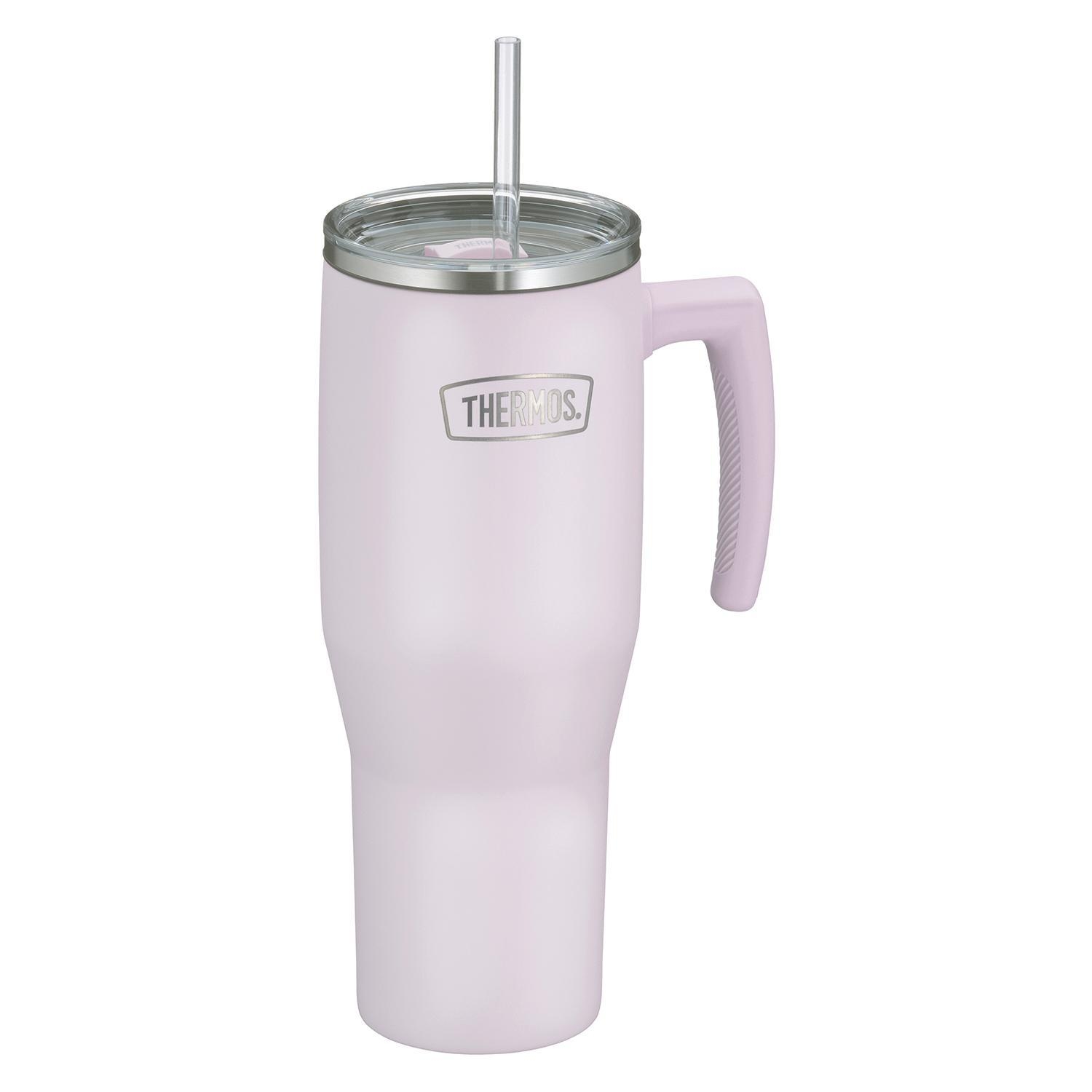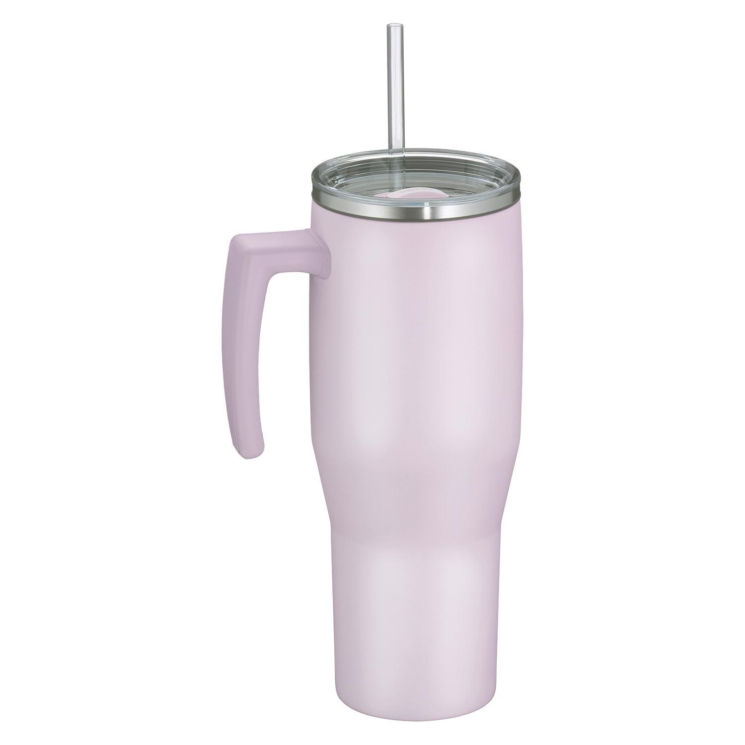 1,1 Liter - H 31,2 cm - Rosa matt - Edelstahl 18/8 - mit Deckel und Strohhalm