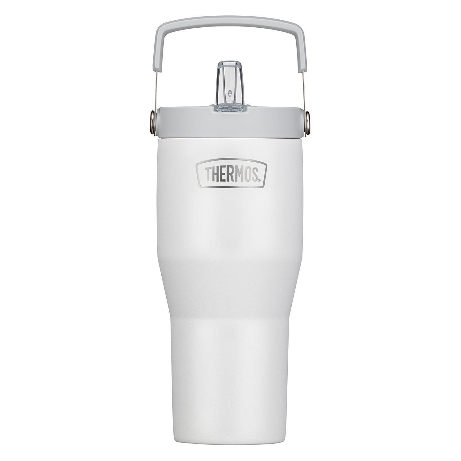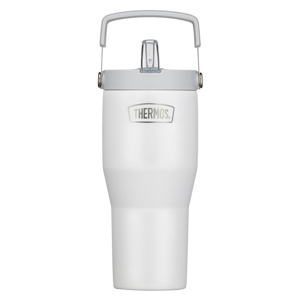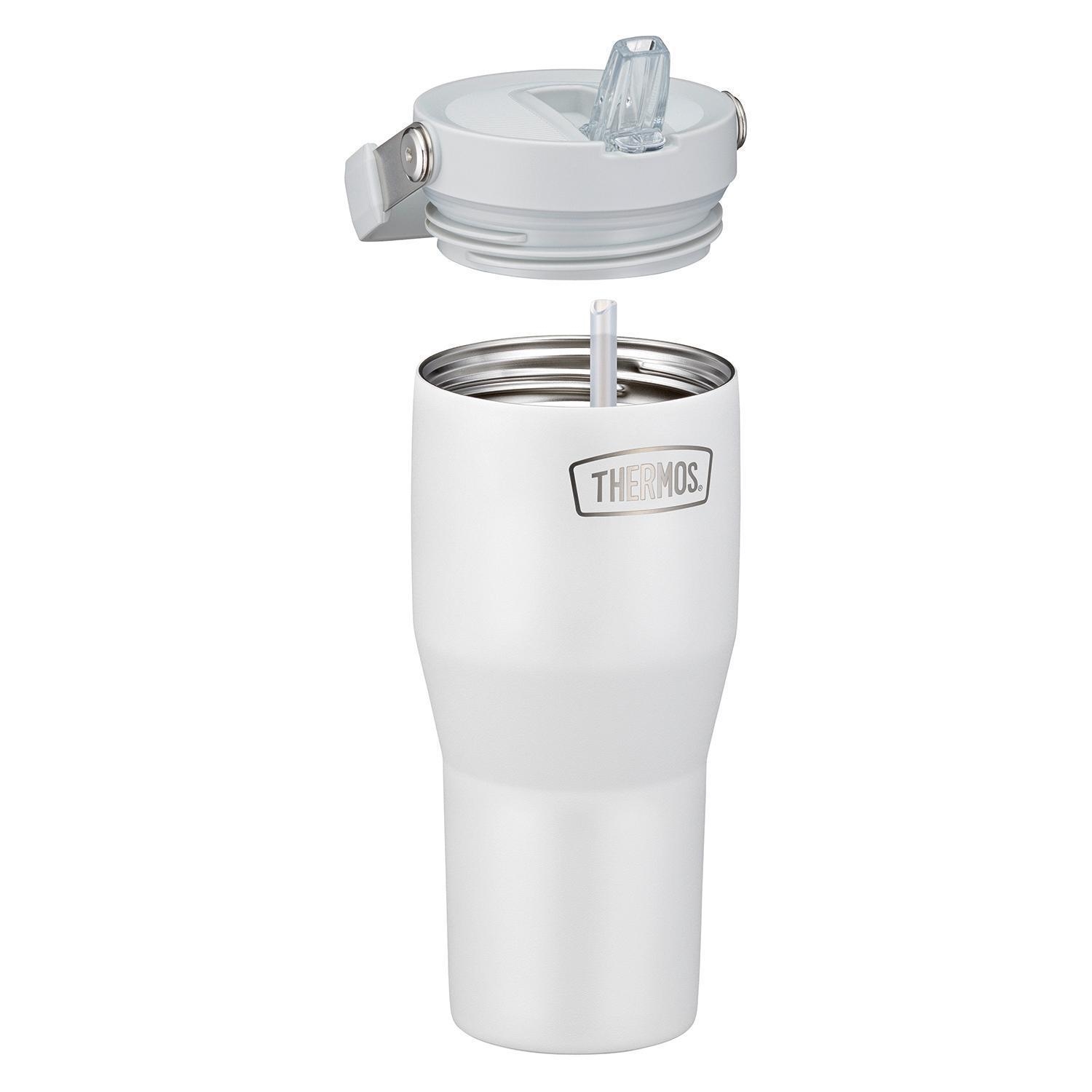 850 ml - H 23,4 cm - Weiß matt - Edelstahl 18/8 - mit Deckel und Strohhalm