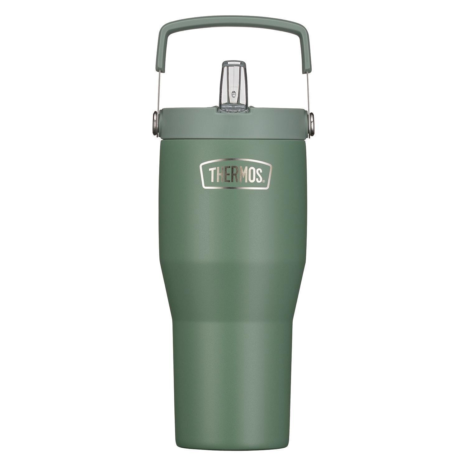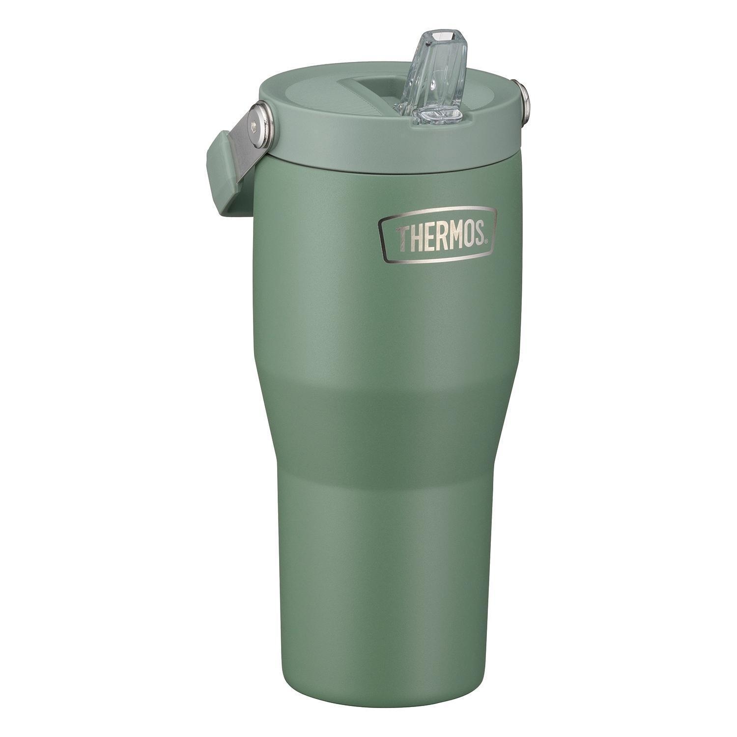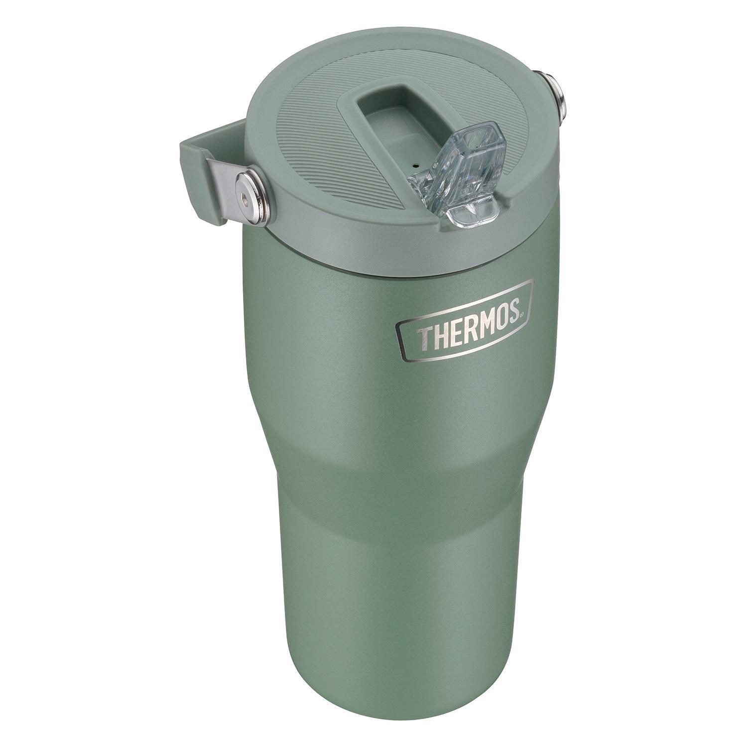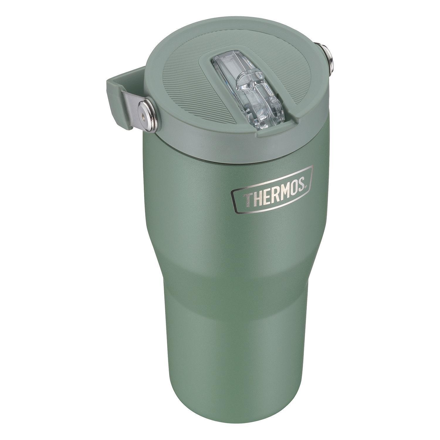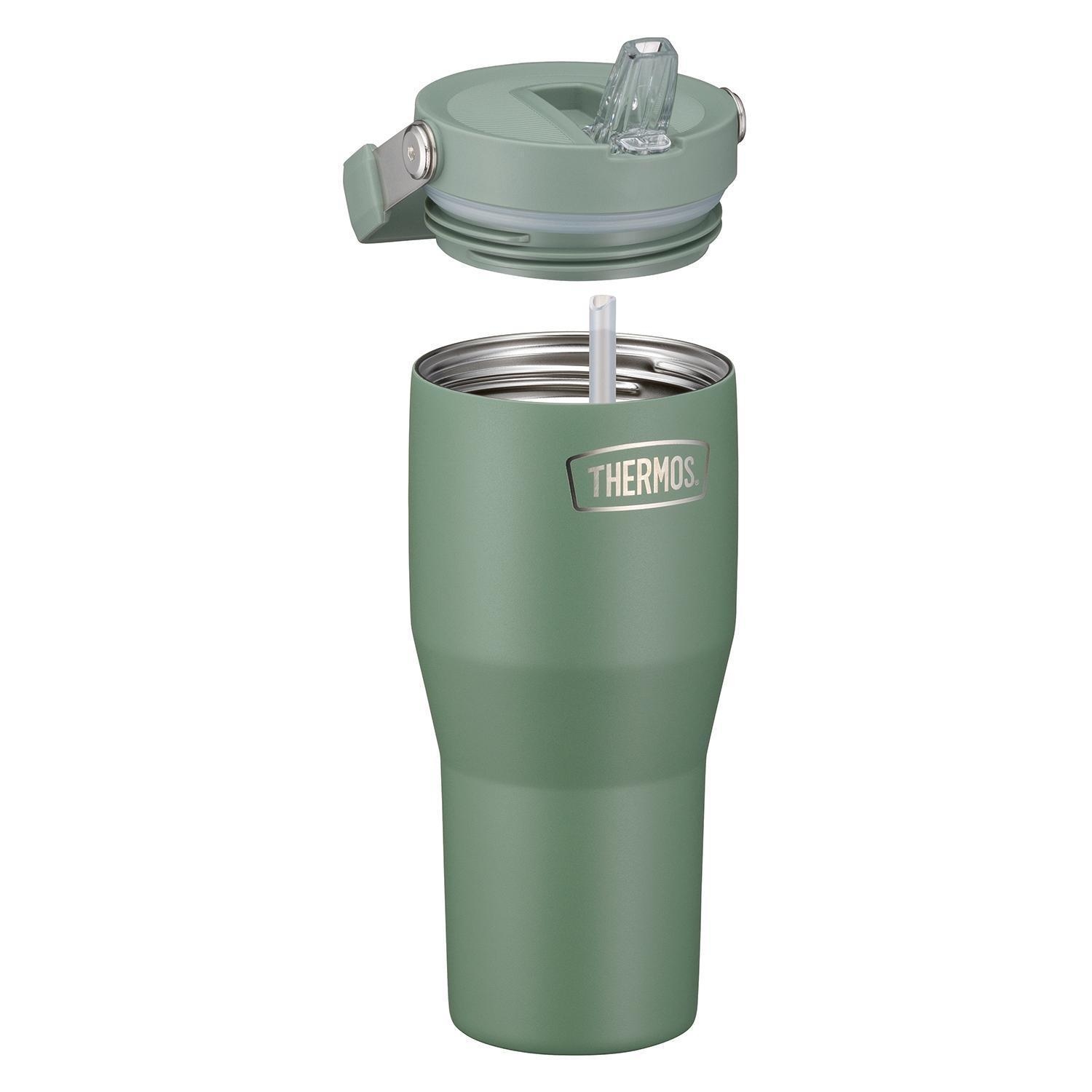 850 ml - H 23,4 cm - Grün matt - Edelstahl 18/8 - mit Deckel und Strohhalm