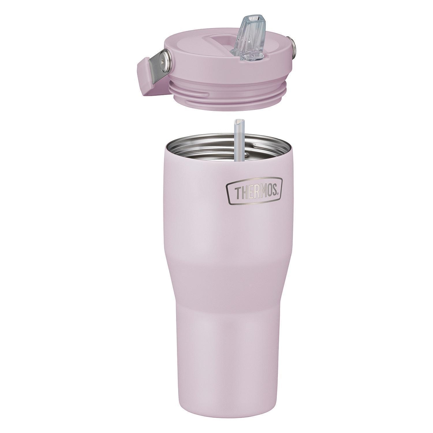 850 ml - H 23,4 cm - Rosa matt - Edelstahl 18/8 - mit Deckel und Strohhalm
