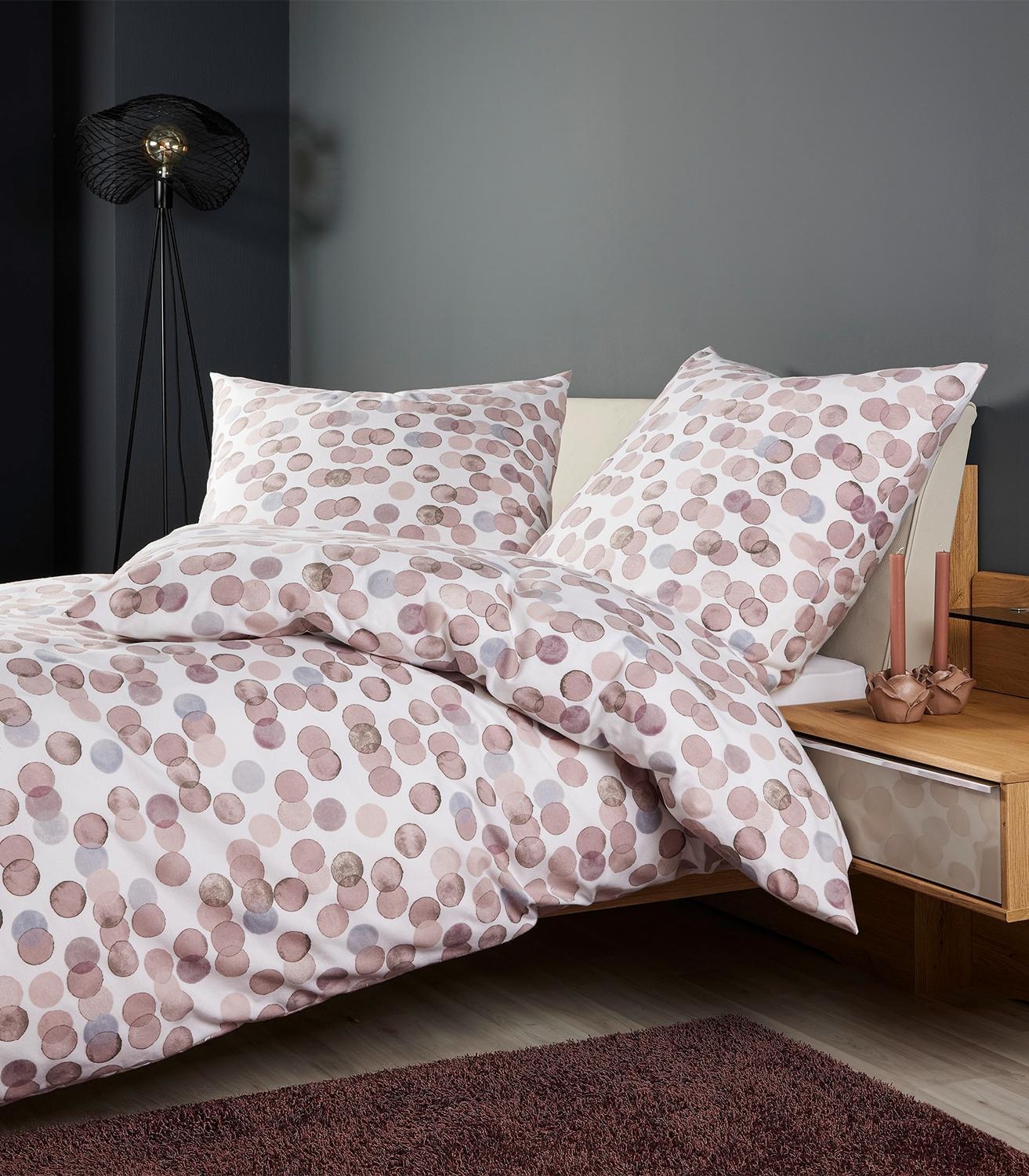 Die Feinbiber-Bettwäsche DAVINA von Janine sorgt für gemütliche Nächte und ein stilvolles Schlafzimmer. Gefertigt aus reiner Baumwolle in weicher Feinbiber-Qualität, bietet sie hohen Komfort und Wärme. Das Aquarellkreise-Muster in Altrosa auf weißem Grund setzt moderne Akzente. Das Set enthält einen Bettbezug in 135 x 200 cm und einen Kissenbezug in 80 x 80 cm, beide mit praktischem Reißverschluss. Waschbar bei 60 °C und pflegeleicht für hygienische Frische.