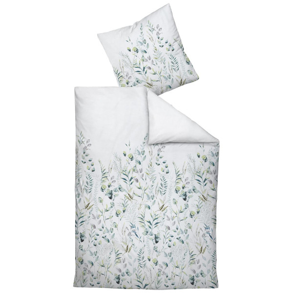 - Mako-Satin-Bettwäsche in Weiß und Grün