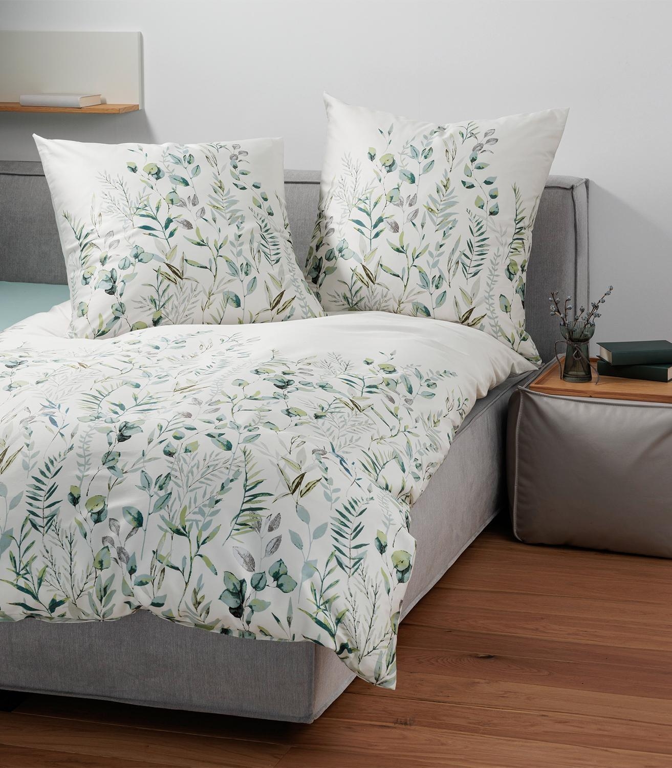 - Mako-Satin-Bettwäsche in Weiß und Grün