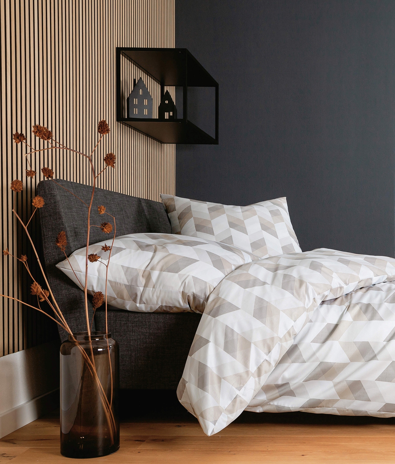 - Mako-Satin-Bettwäsche in weiß, beige und braun