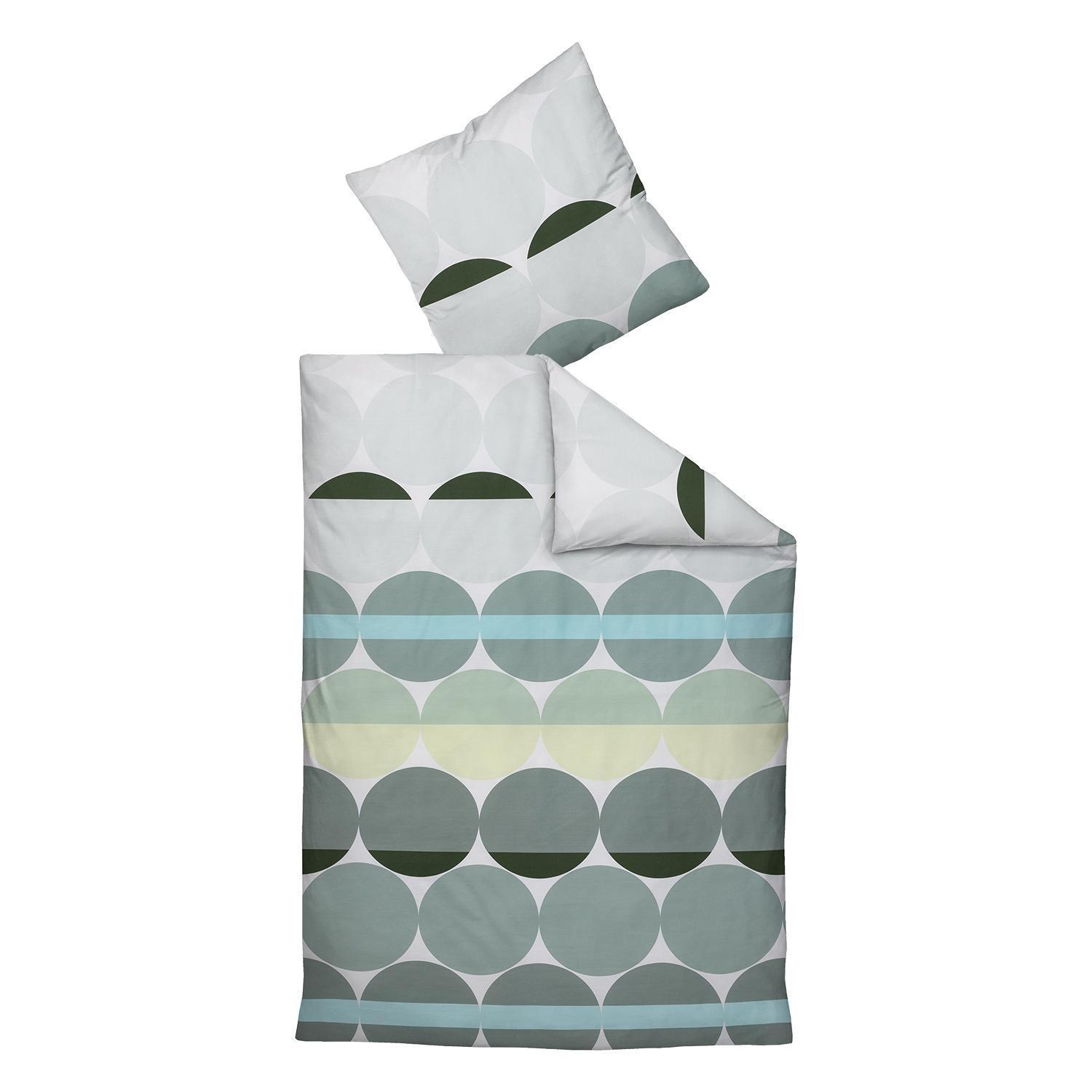 Die Mako-Satin-Bettwäsche OLIVIA von Janine mit Kreismuster in Weiß, Salbeigrün und Blau bietet mit 135 x 200 cm ultimativen Komfort. Hergestellt aus 100 % Baumwolle, ist sie mit einem Reißverschluss ausgestattet. Pflegeleicht bei 60 °C waschbar und trocknergeeignet. Eine stilvolle und praktische Ergänzung für jedes Schlafzimmer.