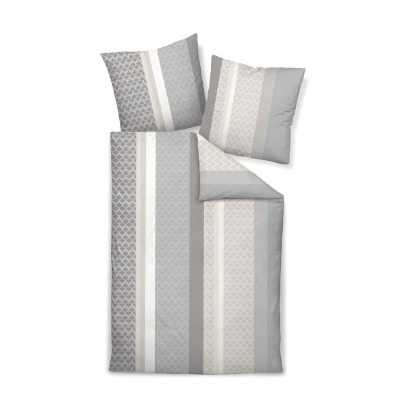 Bettwäsche PERLMO in Sandgrau und Beige von JANINE kombiniert elegantes Design mit Mako-Satin-Qualität aus 100 % Baumwolle. Die verschiedenen Muster verleihen ihr eine moderne Optik, während der praktische Reißverschluss den Komfort beim Beziehen erhöht. Die pflegeleichte Bettwäsche ist bis 60 °C waschbar und ideal für stilbewusste Schläfer.