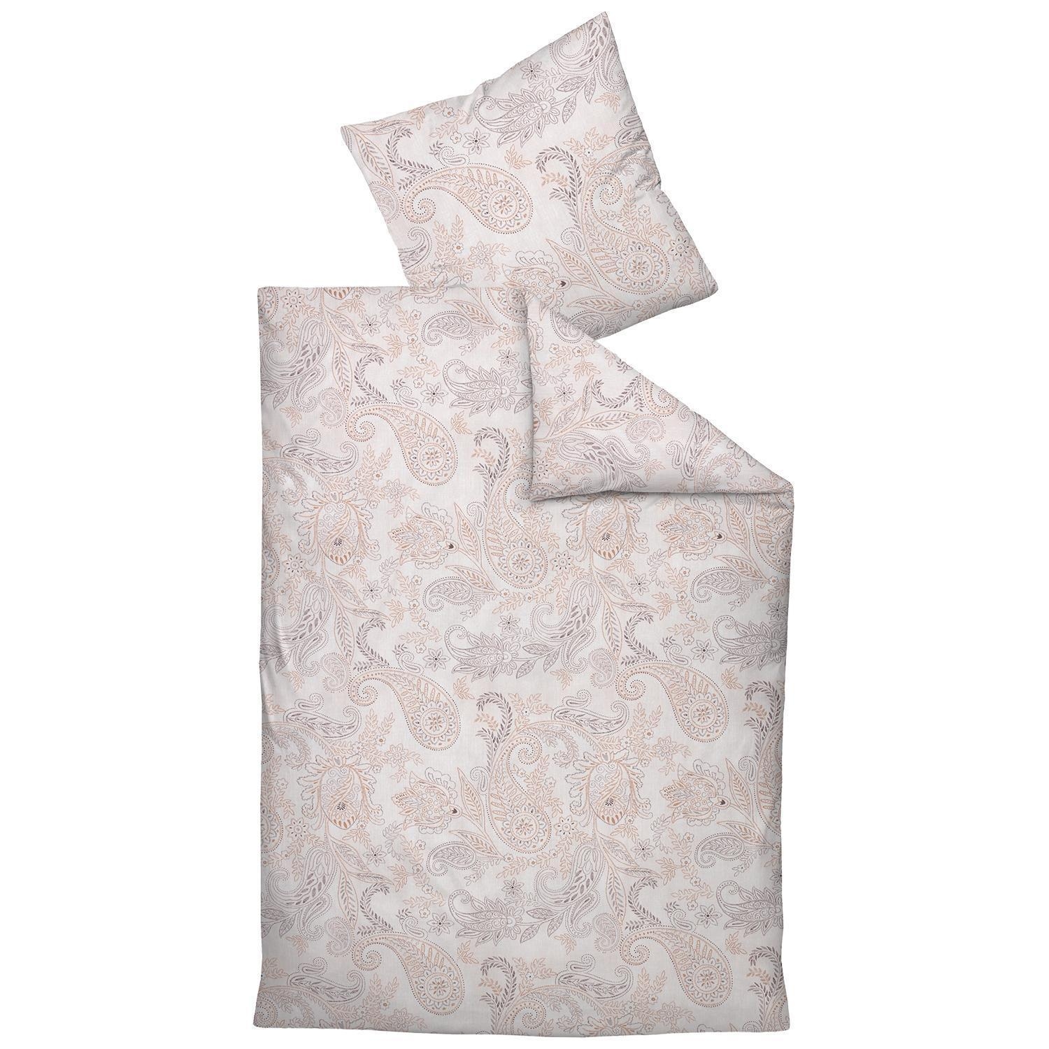 Die Soft-Cotton-Bettwäsche CORTINO von Janine in Kupferfarben und Mocca besticht mit einem eleganten Paisleymuster und einer weichen, atmungsaktiven Baumwollqualität. Der Bettbezug misst 155 x 220 cm und wird durch einen passenden Kissenbezug ergänzt. Dank praktischem Reißverschluss lässt sich die Bettwäsche leicht beziehen. Sie ist bei 60 °C waschbar, trocknergeeignet und bietet ein besonders angenehmes Hautgefühl.