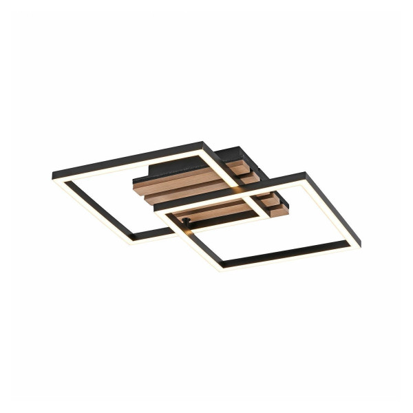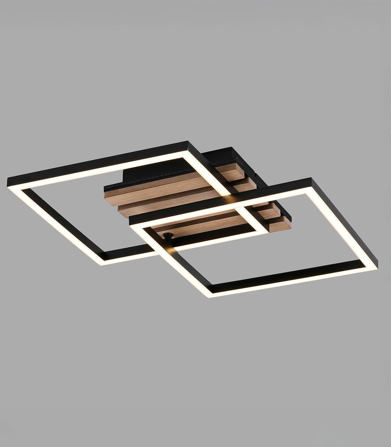 Die LED-Deckenleuchte AKUSTIKA der Marke Just Light. besteht aus Metall in Schwarz und Eichenholzfurnier auf Akustikfilz. Ein Lampenschirm ist drehbar und ermöglicht eine flexible Ausrichtung. Das fest verbaute LED-Leuchtmittel erzeugt warmweißes Licht mit 3000 Kelvin und erreicht eine Lichtleistung von 1800 Lumen. Die Leuchte verfügt über eine Leistung von 15 Watt. Ihre Maße betragen 37 cm in der Breite, 7,8 cm in der Höhe sowie 36 cm in der Tiefe. Das Leuchtmittel ist im Lieferumfang enthalten, ein Austausch ist jedoch nicht möglich.