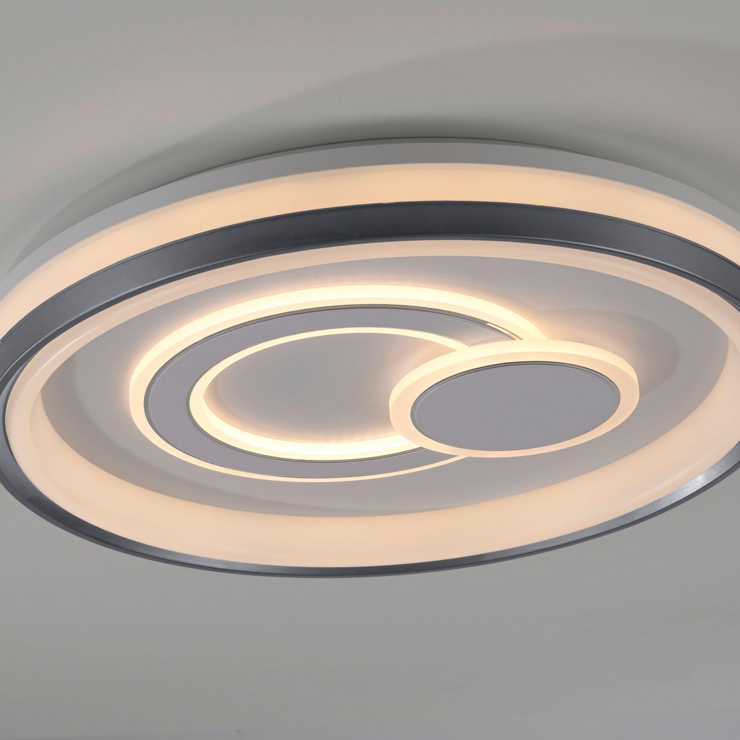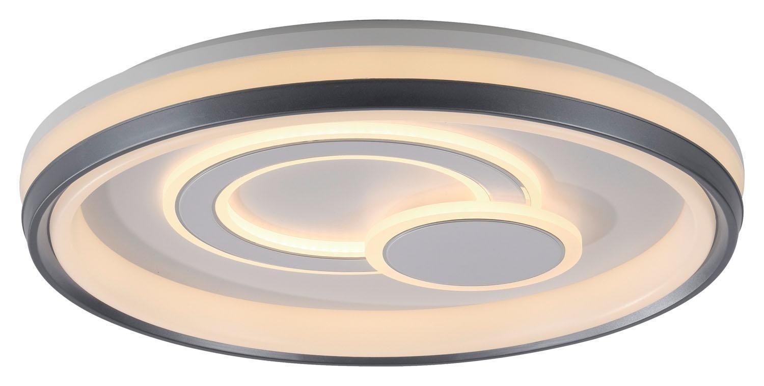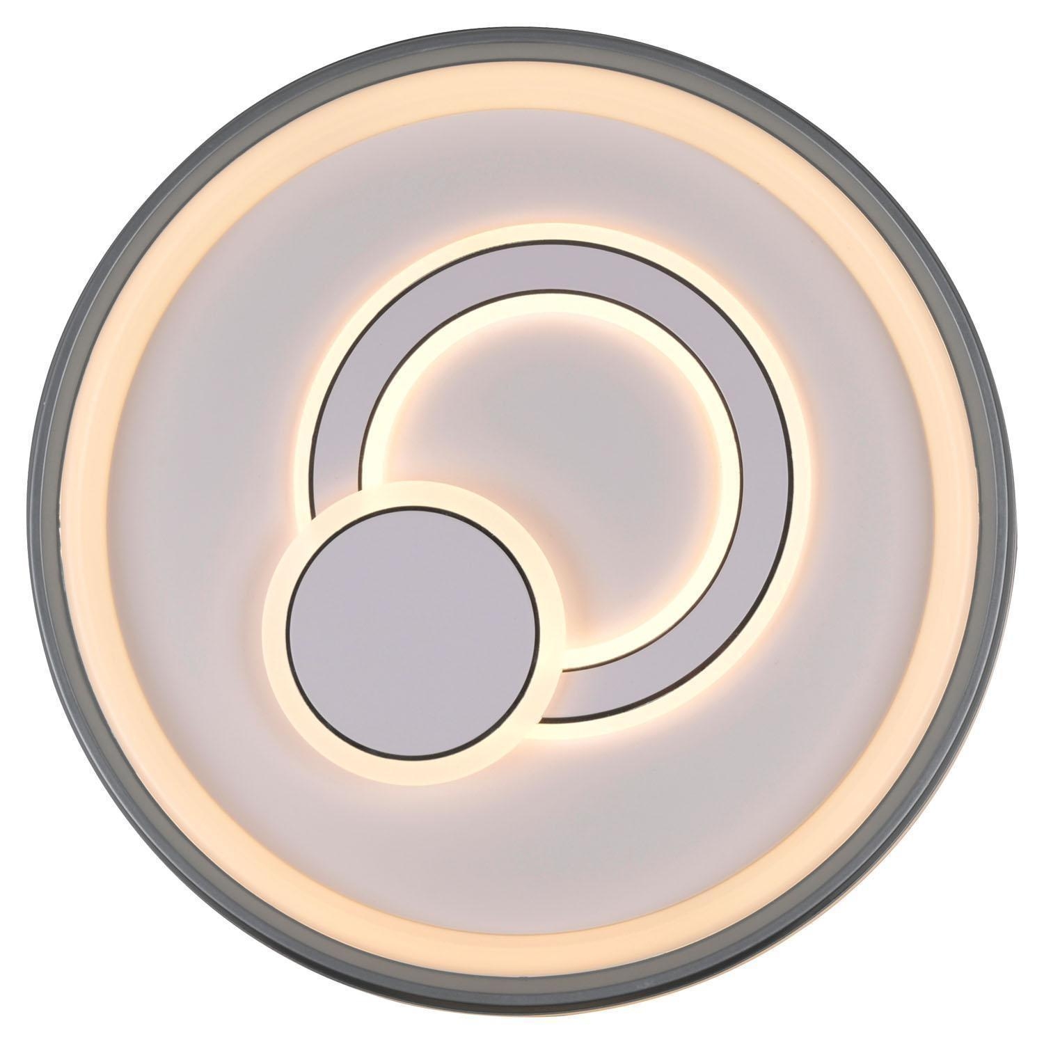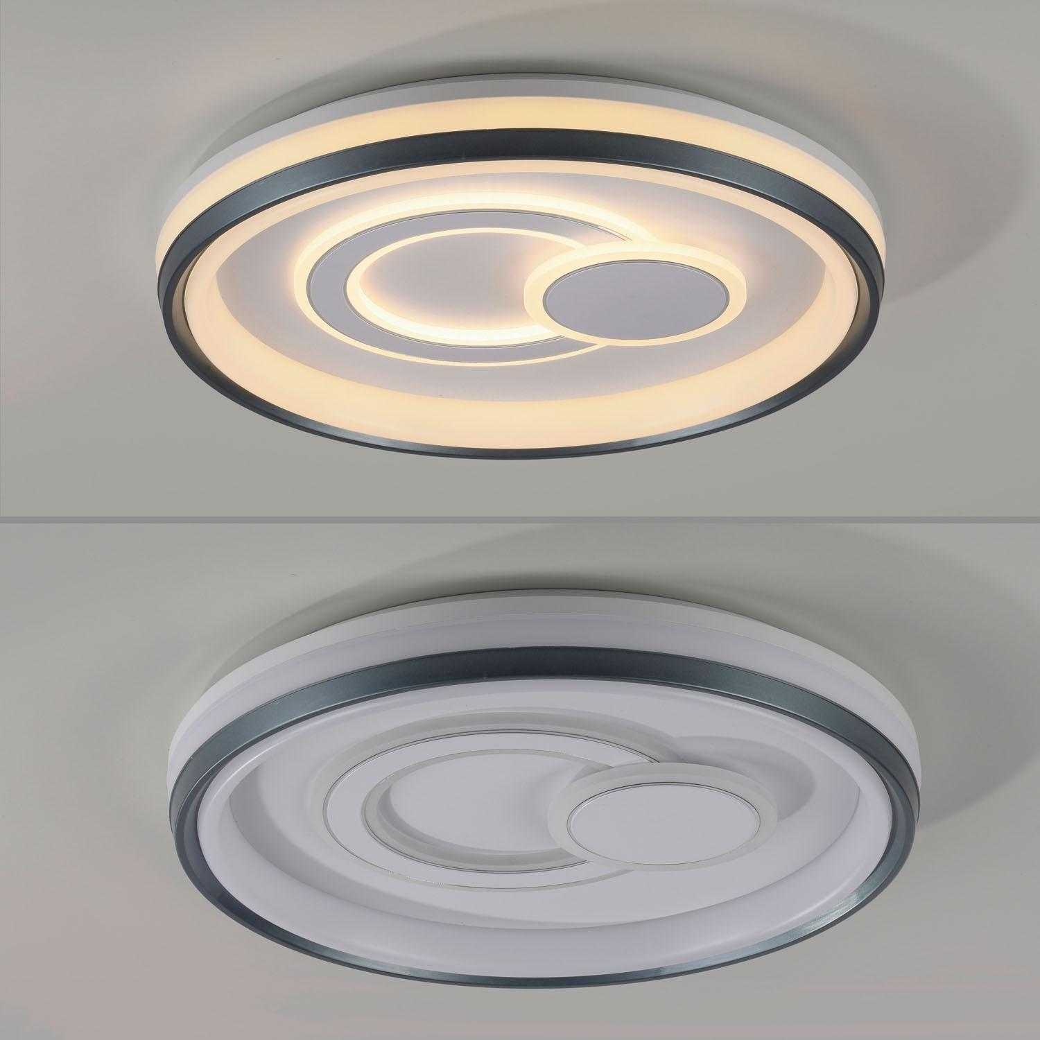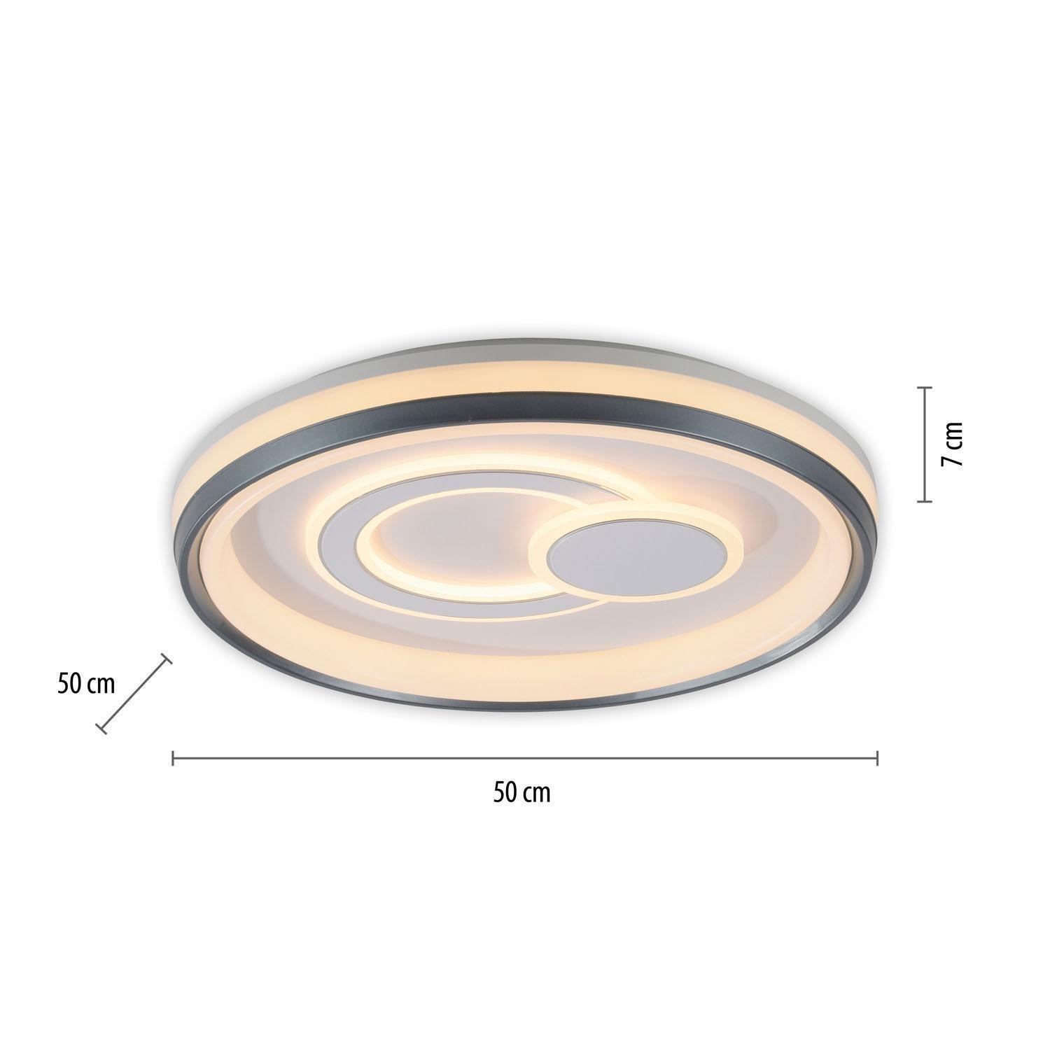 Die LED-Deckenleuchte MINELLI der Marke Just Light überzeugt durch ihr modernes und schlichtes Design. Die Leuchte besteht aus robustem Metall in Schwarz, während der weiße Kunststoff-Lampenschirm für eine gleichmäßige Lichtverteilung sorgt. Mit einem Durchmesser von 50 cm und einer Höhe von nur 7 cm fügt sie sich dezent in verschiedenste Raumgestaltungen ein. Die integrierte LED mit 35 Watt Leistung bietet eine Lichtstärke von 4600 Lumen bei 3000 Kelvin, was einem angenehmen warmweißen Licht entspricht. Zudem ist die Leuchte über den Wandschalter dreistufig dimmbar. Ein Austausch des Leuchtmittels ist jedoch nicht möglich.
