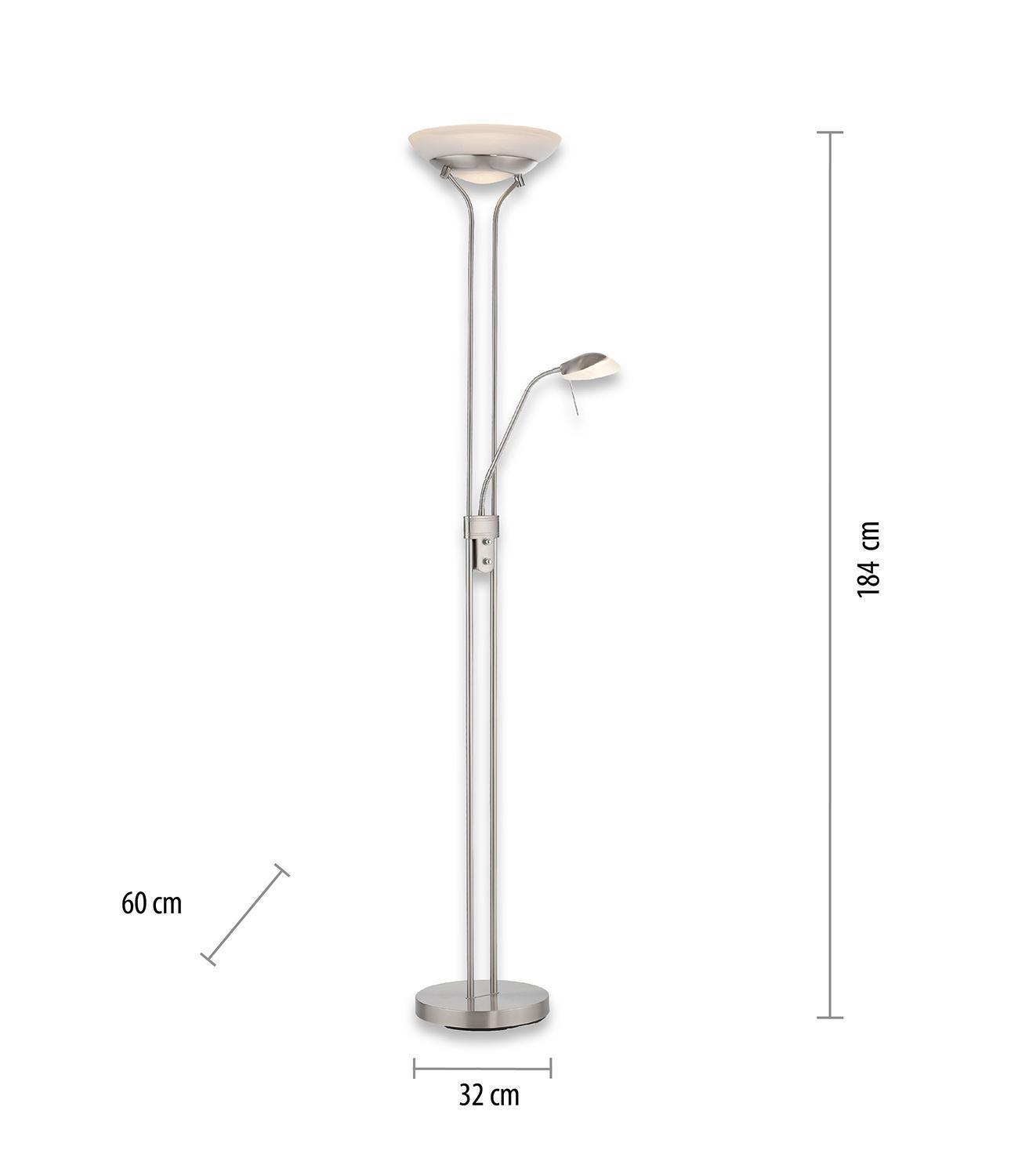 H 184 cm - Silbergrau - Stahl - dimmbar - mit Lesearm