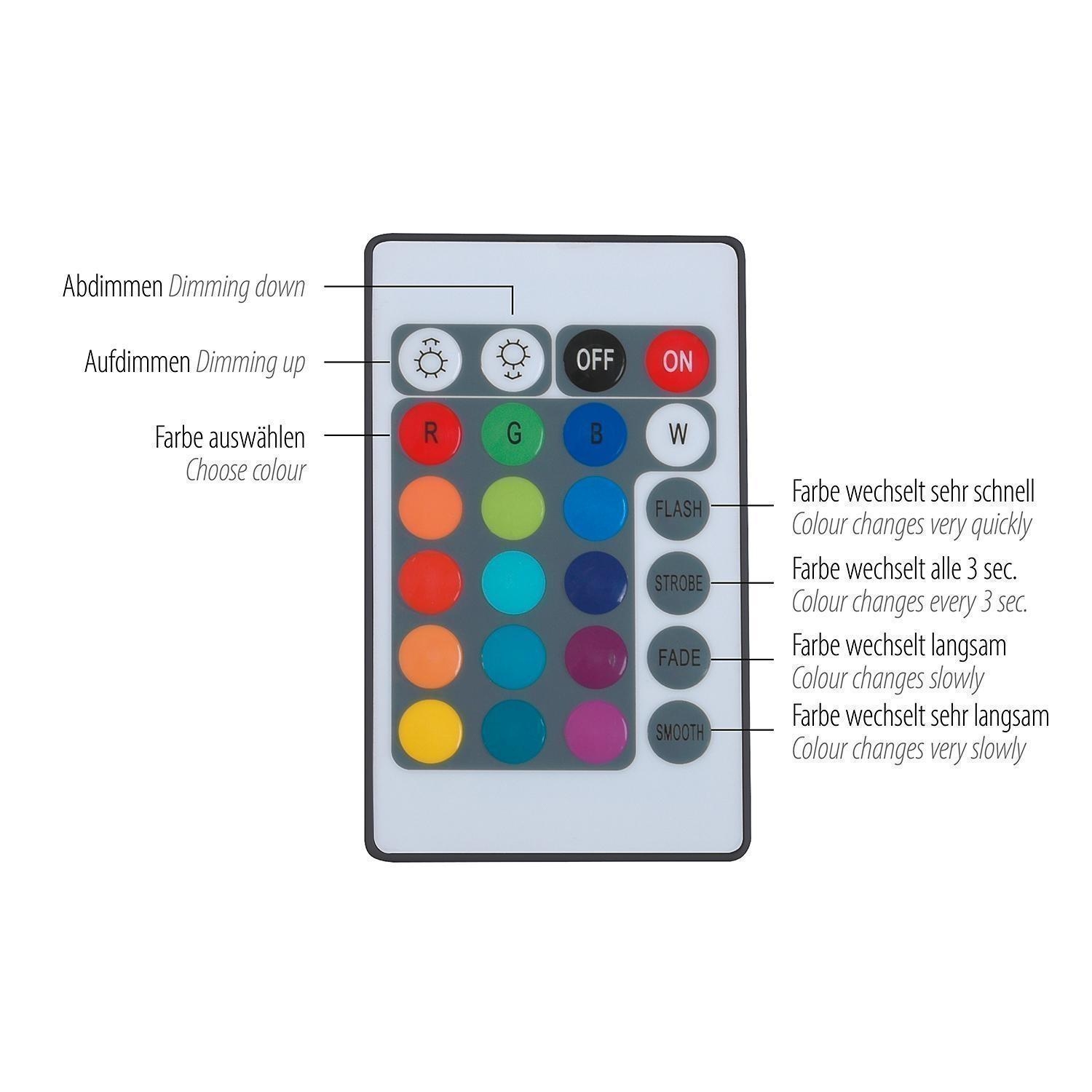 - RGB-Farbwechsel und Dimmfunktion
