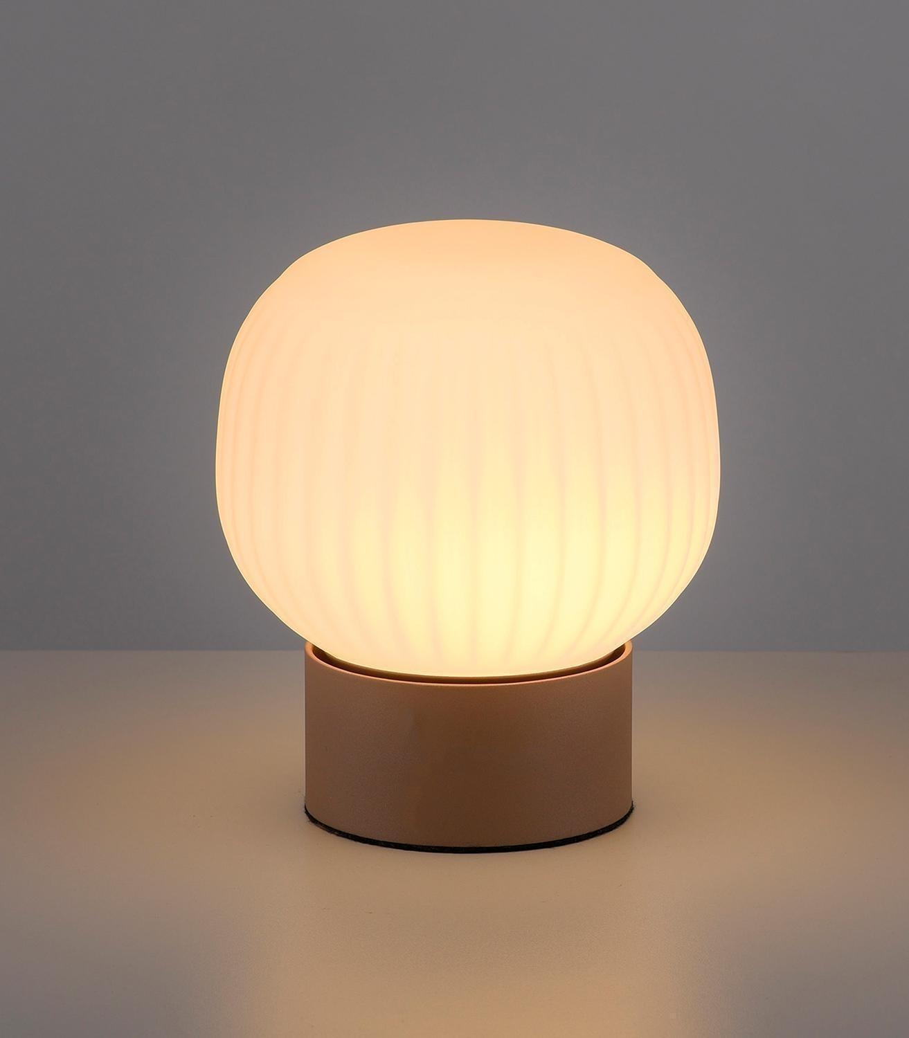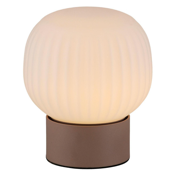 Die LED-Tischlampe NAMI der Marke Just Light. besteht aus Metall in Sandbraun und ist mit einem Lampenschirm aus Glas ausgestattet. Sie verfügt über einen Schnurschalter zur einfachen Bedienung. Die Lampe hat einen Durchmesser von 15 cm und eine Höhe von 18 cm. Ausgestattet ist sie mit einem fest verbauten LED-Leuchtmittel, das im Lieferumfang enthalten ist und nicht ausgetauscht werden kann. Die Leistung beträgt 5 Watt, die Farbtemperatur liegt bei 3000 Kelvin und der Lichtstrom bei 470 Lumen.