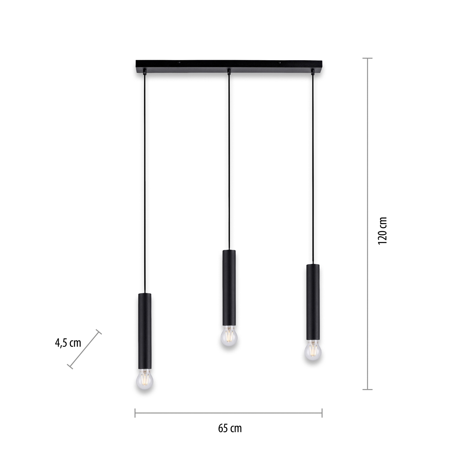 Schwarz - Metall - 3-flammig - 65 x 120 cm