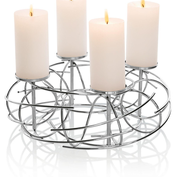 Der Kerzenständer LIFESTYLE der Marke JUSTINUS besteht aus Metall in Silbergrau. Er ist für vier Stumpenkerzen geeignet und kann auch als Adventskranz verwendet werden. Mit einem Durchmesser von 35 cm und einer Höhe von 13,5 cm bietet der Kerzenhalter eine stabile Basis für eine sichere Platzierung der Kerzen. Seine schlichte Form ermöglicht eine vielseitige Nutzung als dekoratives Element in verschiedenen Wohnbereichen.