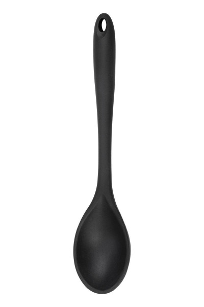 Der Kochlöffel BLACK EDITION der Marke Justinus ist aus schwarzem Silikon gefertigt und weist eine Gesamtlänge von 28,5 cm auf. Dieses Küchenutensil ist bis zu einer Temperatur von 230 °C hitzebeständig und spülmaschinenfest. Zur praktischen Aufbewahrung verfügt der Rührlöffel über eine integrierte Öse zum Aufhängen.