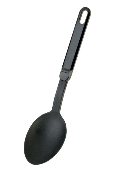 Der Kochlöffel KÜCHENMEISTER der Marke JUSTINUS besteht aus hitzebeständigem Kunststoff in Schwarz und ist bis 220 °C temperaturbeständig. Er verfügt über eine Öse zum Aufhängen, ist spülmaschinenfest und hat die Maße 26,6 cm Länge, 6,2 cm Breite und 3,3 cm Höhe. Der Kochlöffel eignet sich ideal für den Einsatz in der Küche und bietet eine praktische Handhabung.