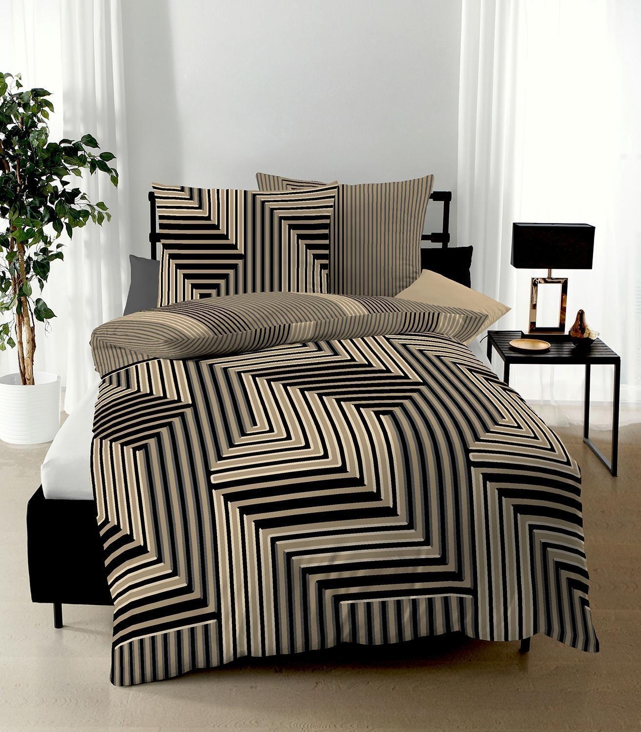 - Feinbiber-Bettwäsche in Goldgelb und Schwarz