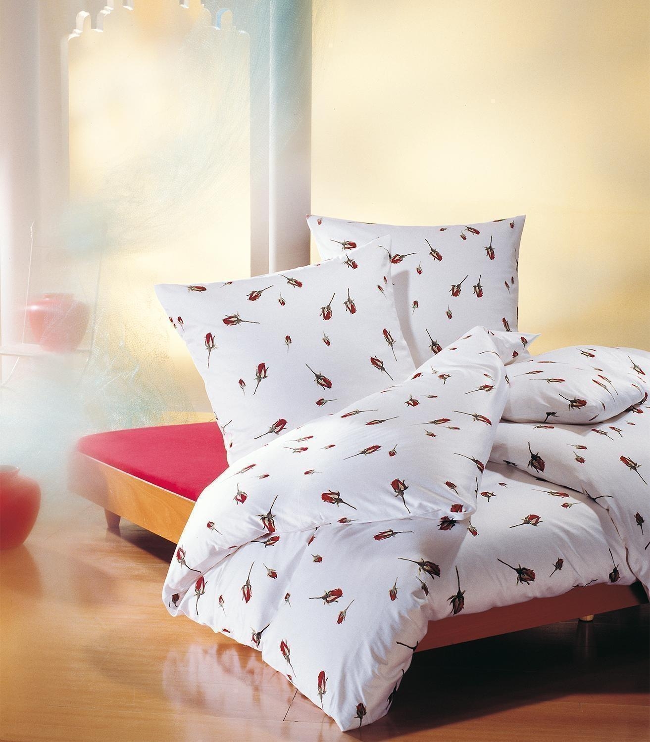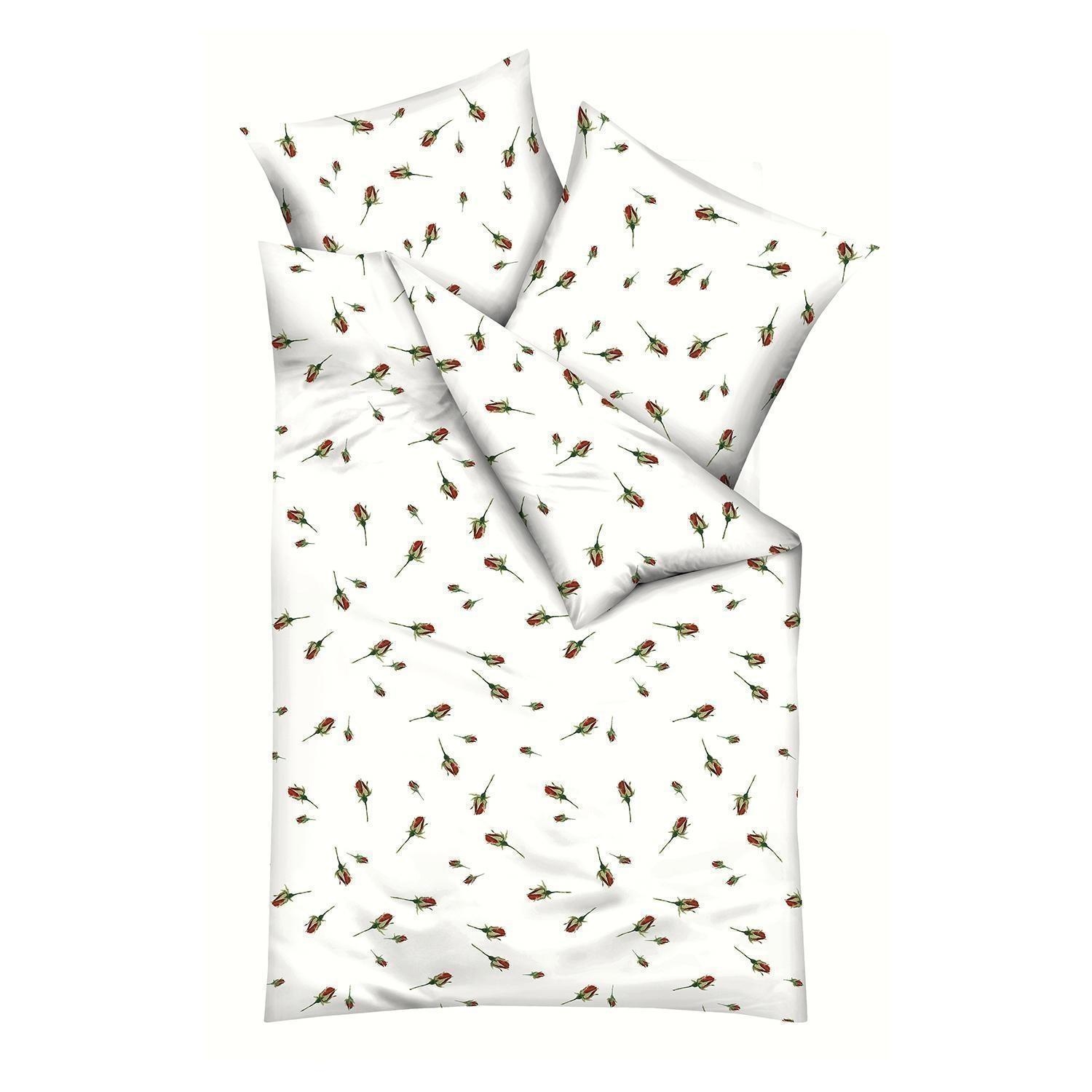 155 x 220 cm - Weiß - Rot - mit Reißverschluss - mit Rosenknospen