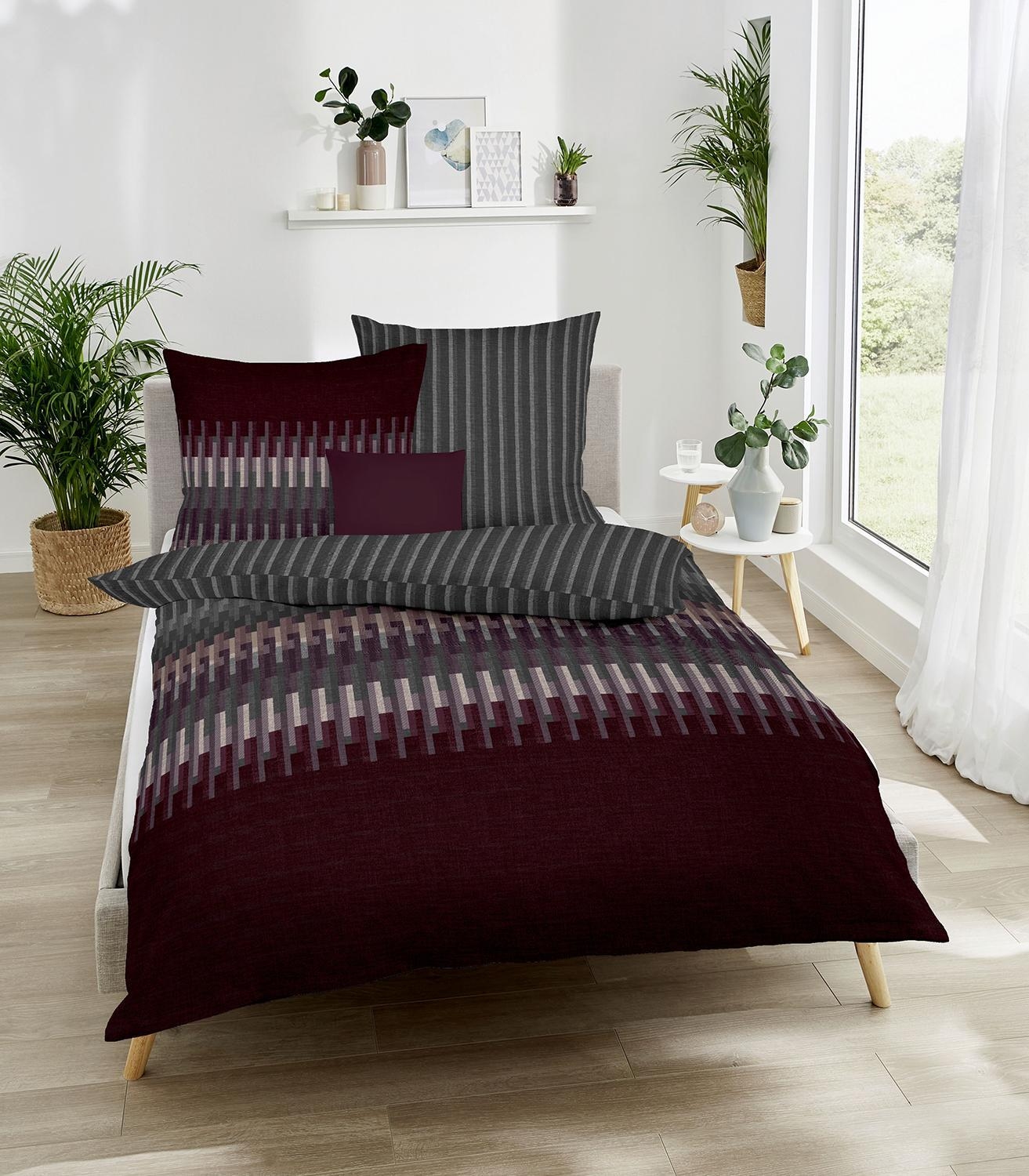 - Feinbiber-Bettwäsche in Burgund und Grau