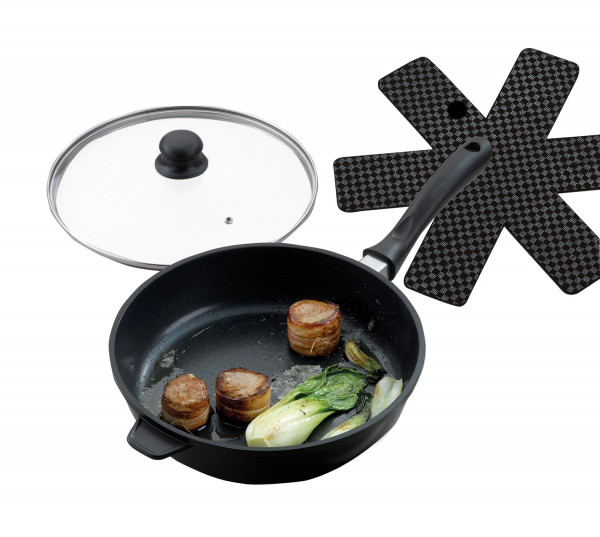 | Lieferumfang: | 1 Bratpfanne mit Antihaftbeschichtung, Glasdeckel und Pfannenschutz |