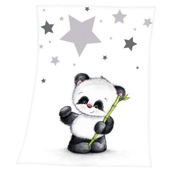 Weiß - 75 x 100 cm - Mikrofaser - Pandabär-Motiv
