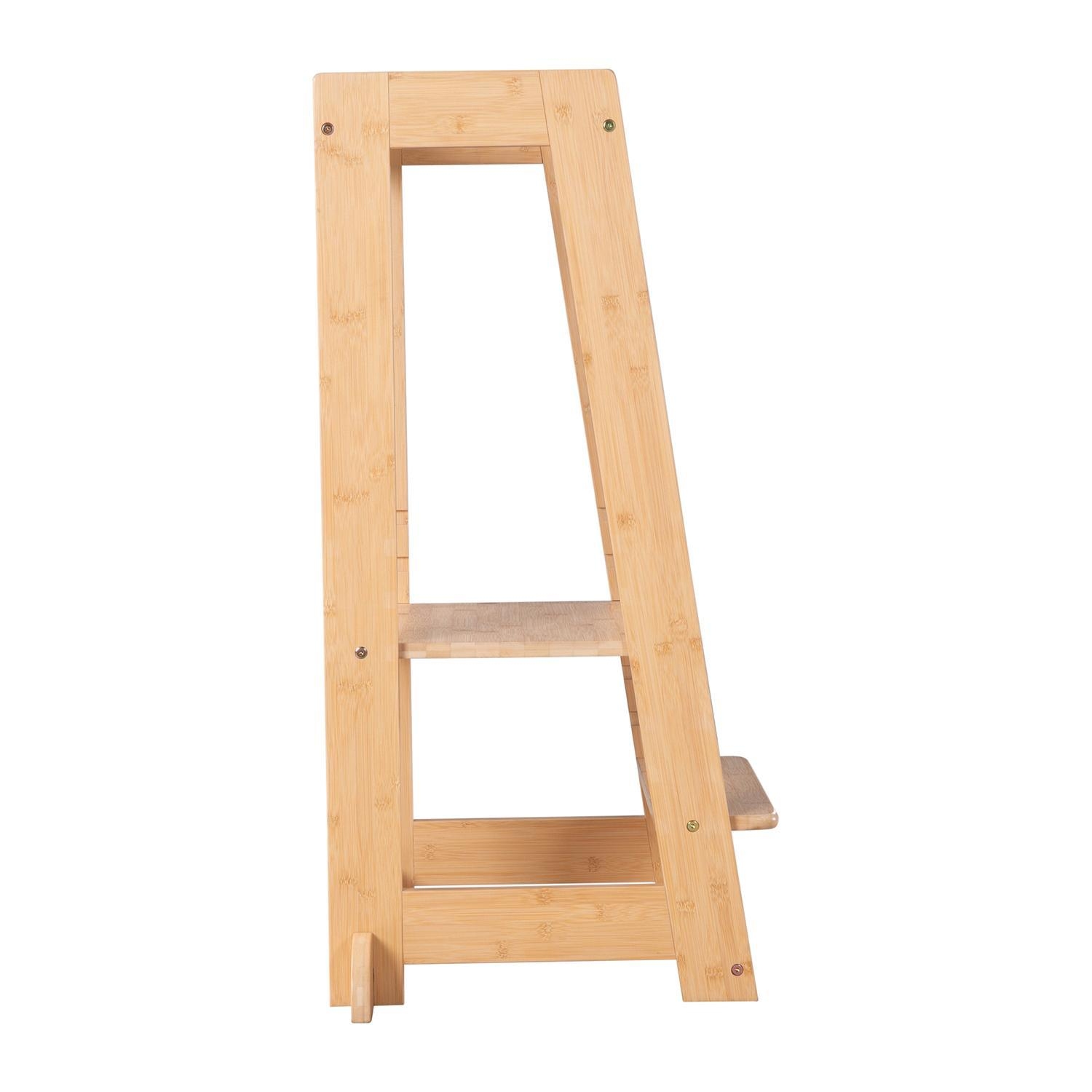 - Kindertritthocker aus lackiertem Bambusholz in Braun