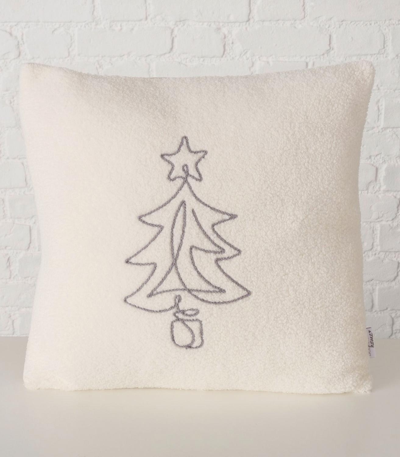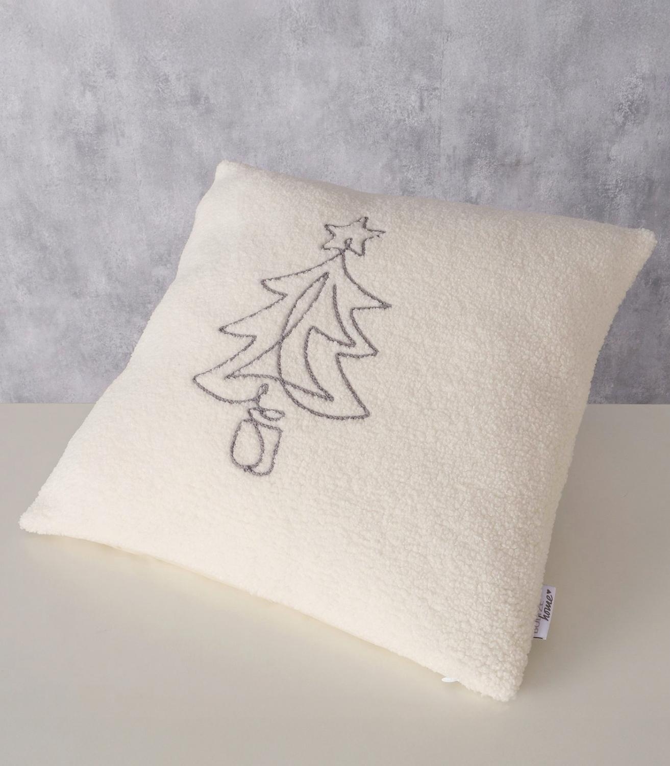 45 x 45 cm - Creme - Grau - Polyester - mit Weihnachtsbaum-Motiv