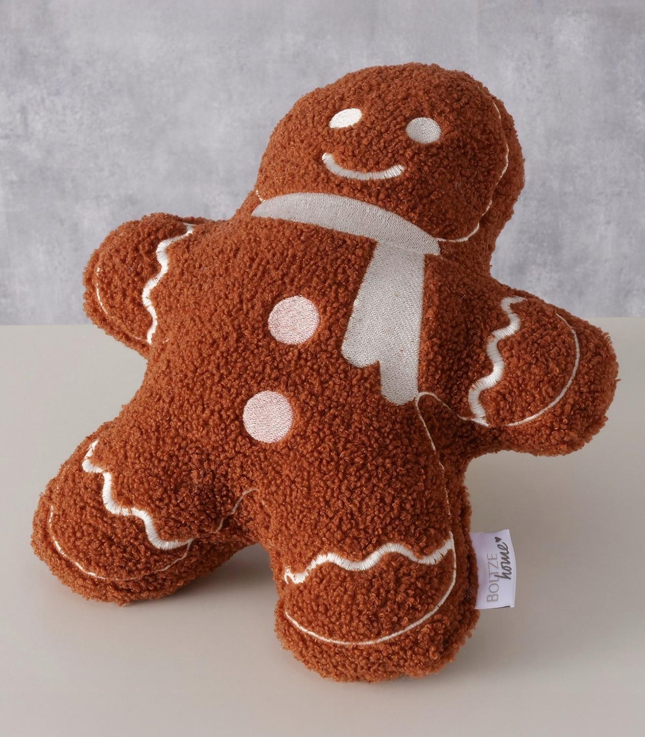 30 x 33 cm - Braun - Weiß - Polyester - Form eines Lebkuchenmannes