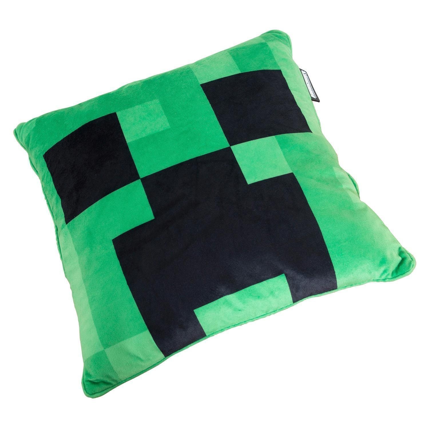 Das Kissen MINECRAFT hat eine quadratische Form und ist in den Farben Grün und Schwarz gestaltet. Es besteht aus Samt und ist im Minecraft-Creeper-Design gehalten. Das Kissen verfügt über eine Füllung. Die Abmessungen betragen 38 cm in der Länge und 38 cm in der Breite.