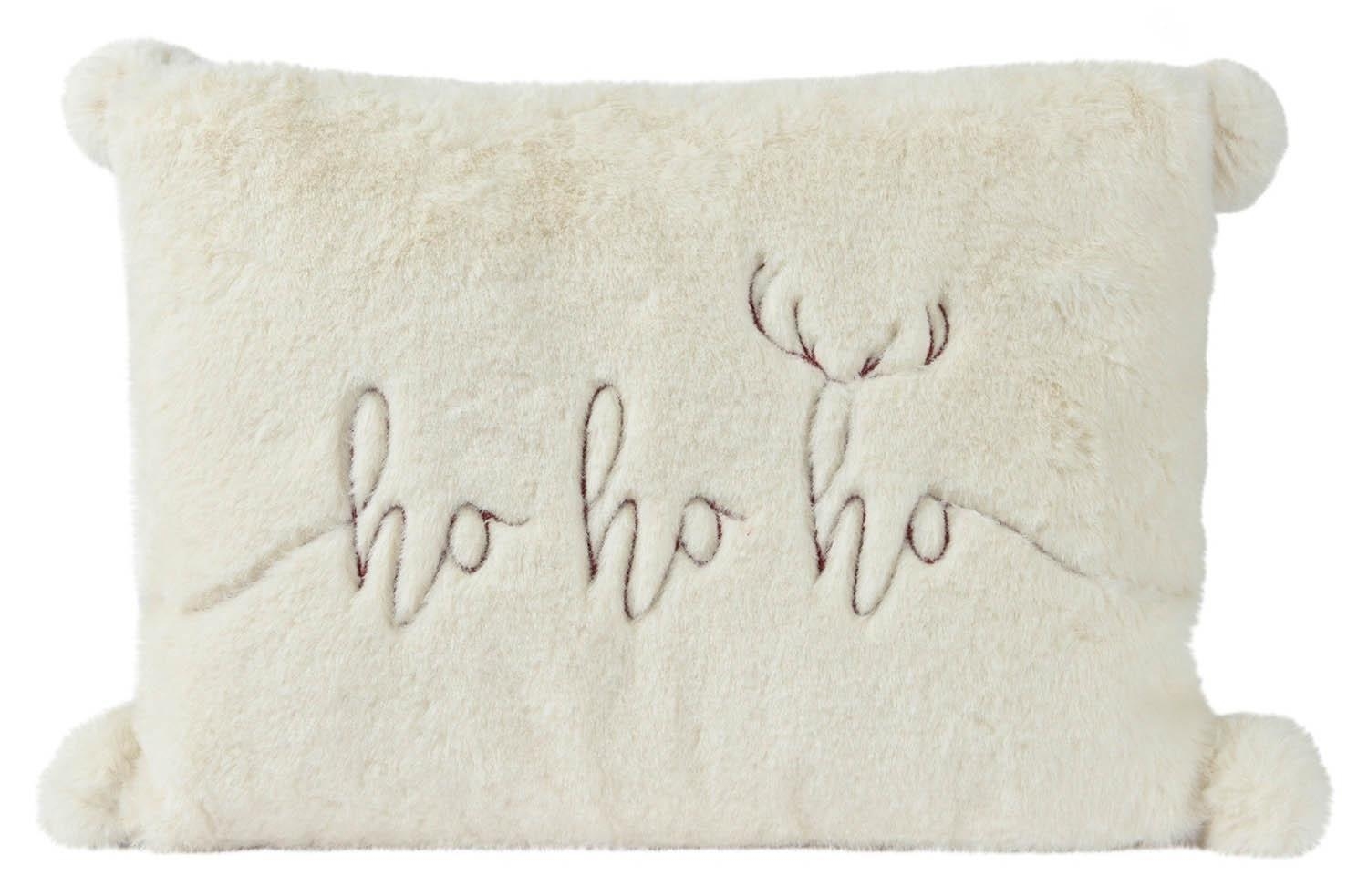 Das Kissen SNOWLAND in Weiß bringt mit seinem gestickten „Ho Ho Ho“-Schriftzug in Rot fröhliche Weihnachtsstimmung in Ihr Zuhause. Mit einer Größe von 40 x 30 cm und gefertigt aus Polyester in edler Samtoptik ist es besonders weich und anschmiegsam. Die Kunstfaserfüllung sorgt für angenehmen Komfort, während kleine Bommel das Design abrunden. Das Kissen ist bis 30 °C waschbar und eignet sich ideal als dekorativer Akzent auf Sofa, Bett oder Sessel.