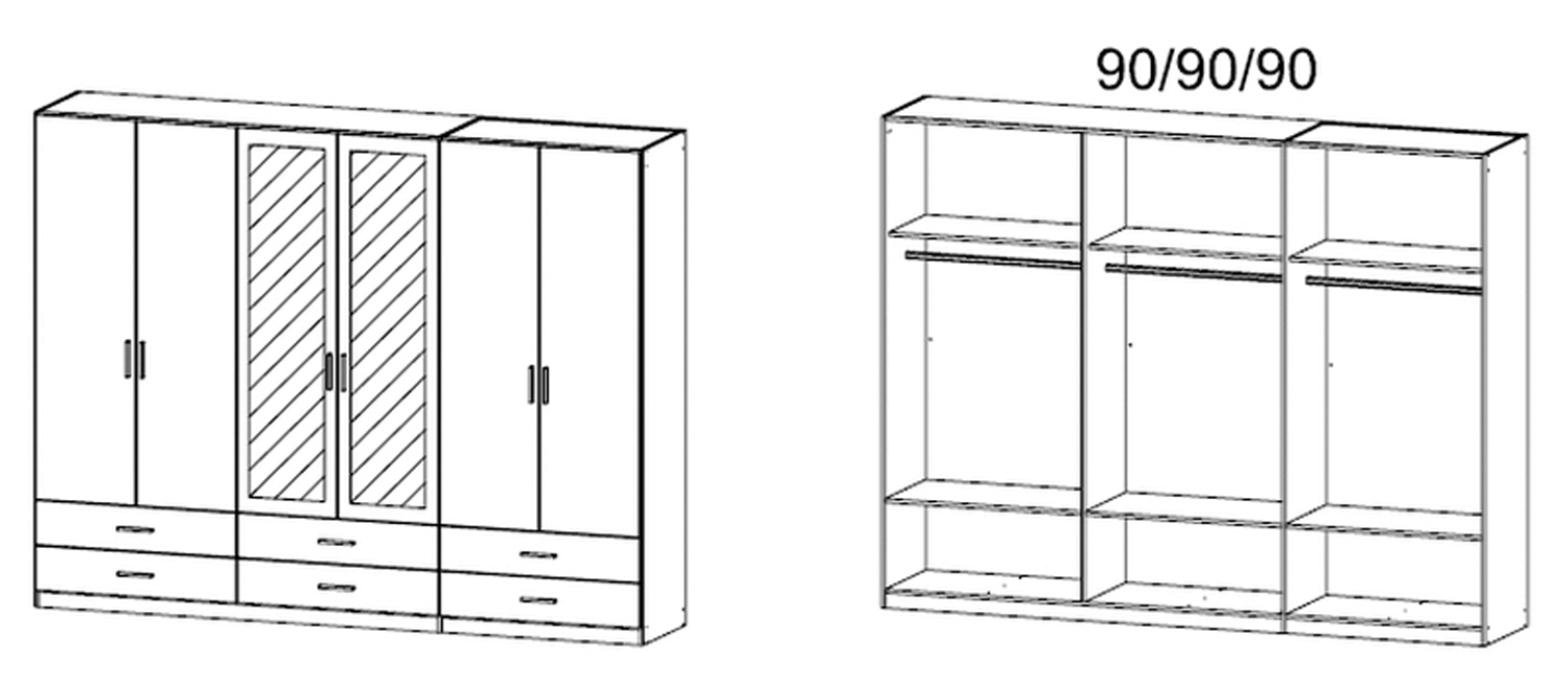 | Lieferumfang: | 1 Kleiderschrank mit Griffen, 3 Einlegeböden und 3 Kleiderstangen |