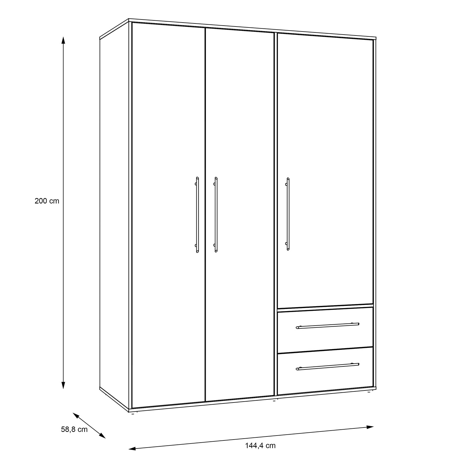 | Lieferumfang: | 1 Kleiderschrank mit 3 Türen, 2 Schubladen, 1 Kleiderstange und 3 Einlegeböden |
