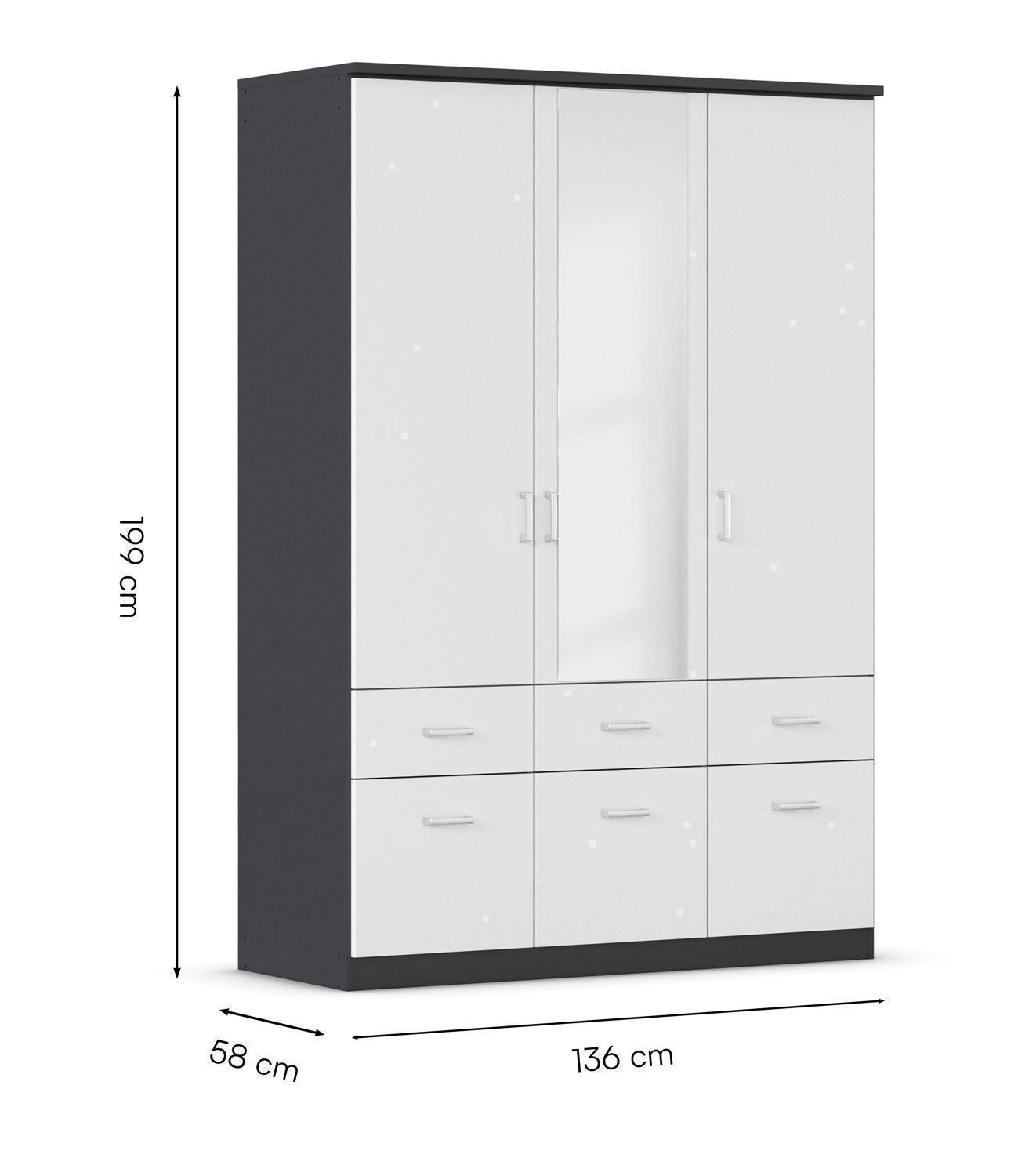 Alpinweiß - Grau metallic - 136 x 199 cm - 3 Türen